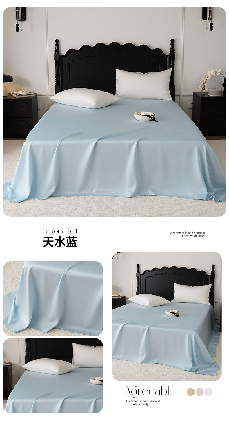• 91家纺网 家纺一手货源 找家纺 EH家居 2025春夏天丝纯色单床单 天水蓝