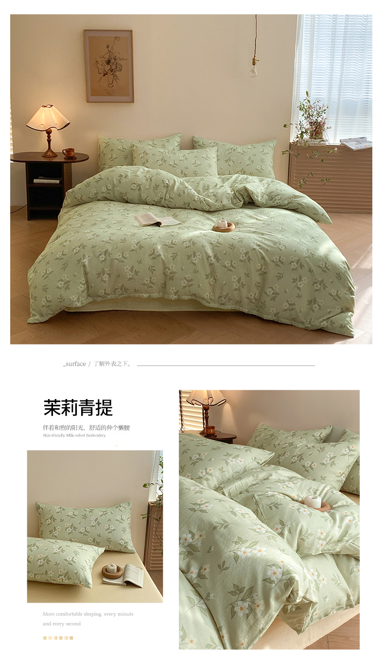 当前位置: 91家纺网 > 商品网购 > 床品套件 > 四件套 > 全棉普通四件套 > 2025新款A类母婴级有氧全棉纯棉双层纱纯棉印花四件套 场景一 茉莉青提