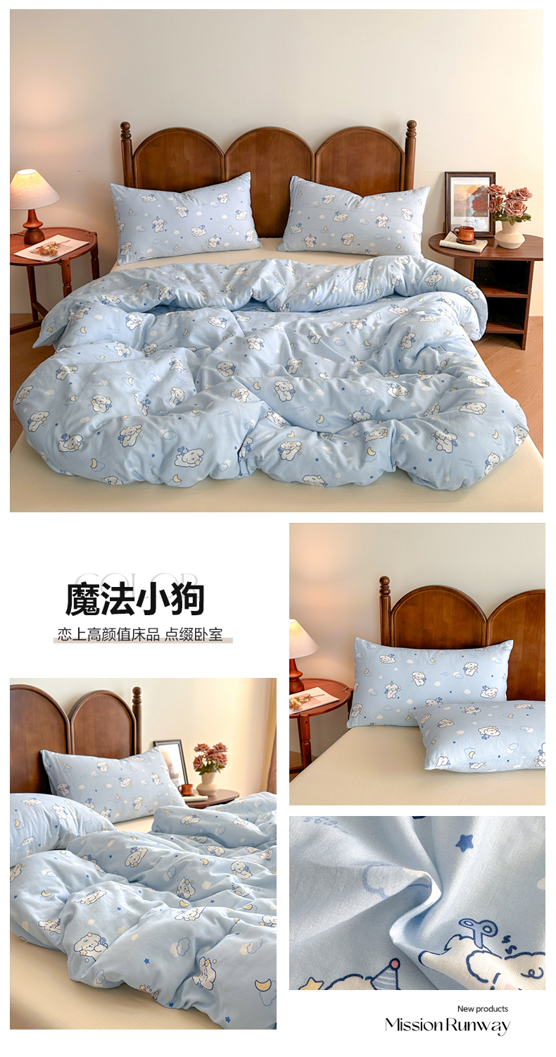 当前位置: 91家纺网 > 商品网购 > 床品套件 > 四件套 > 全棉普通四件套 > 2025新款A类母婴级有氧全棉纯棉双层纱纯棉印花四件套 场景二 魔法小狗