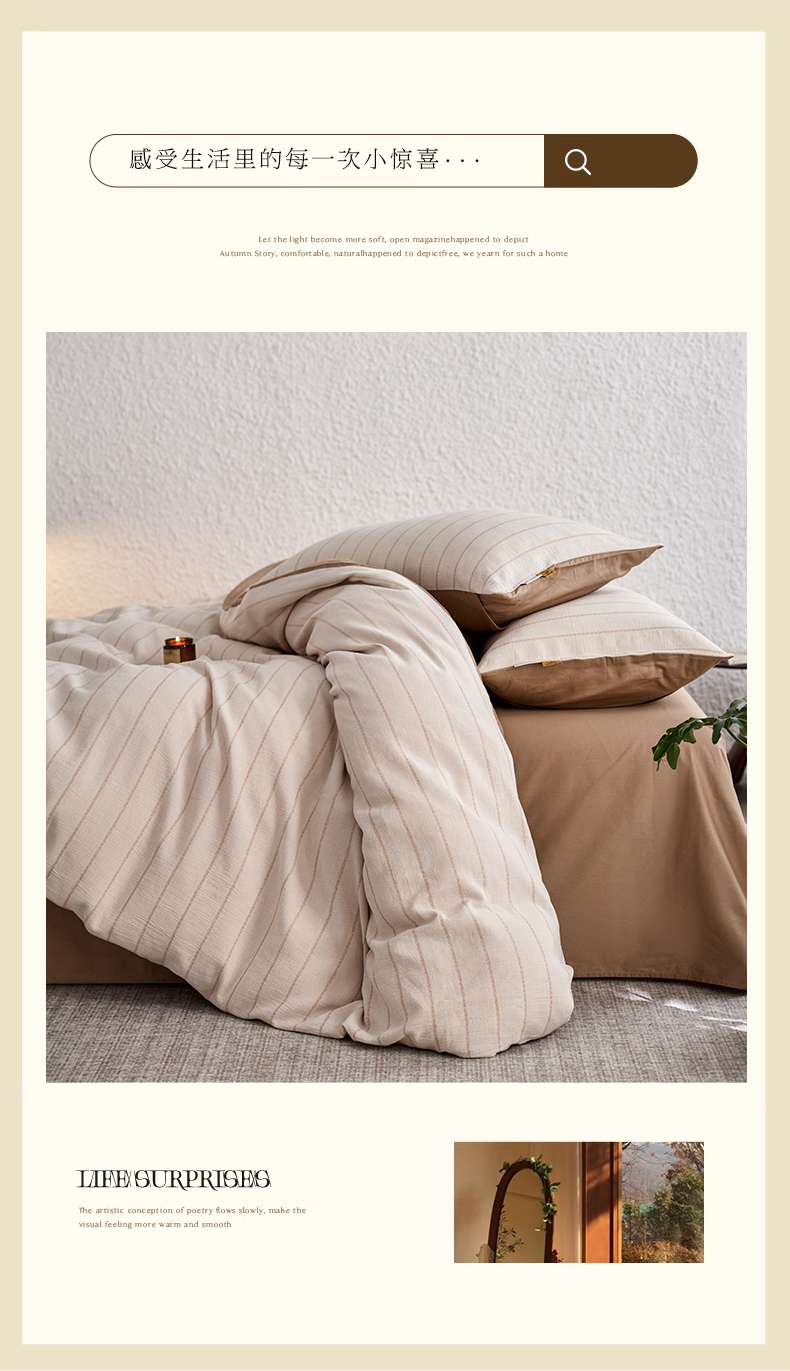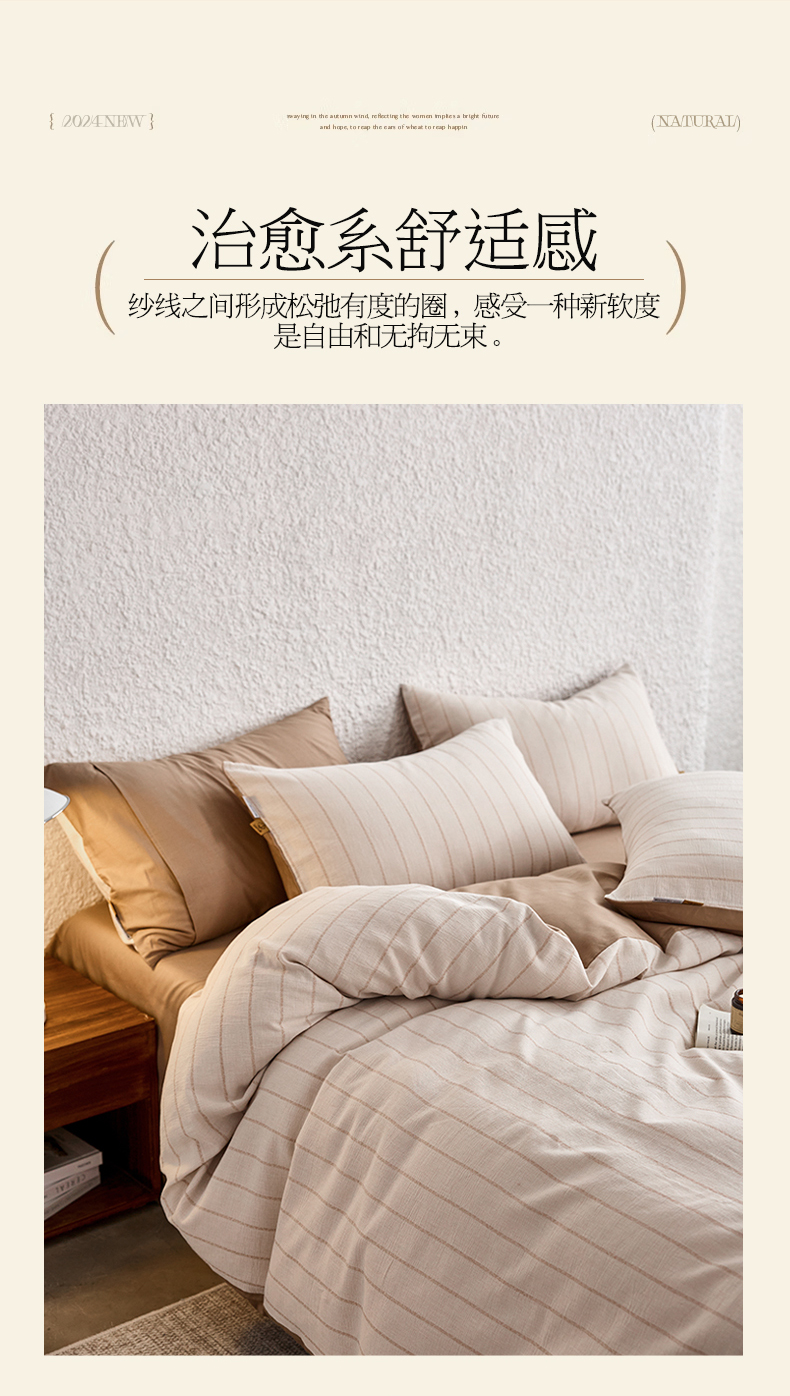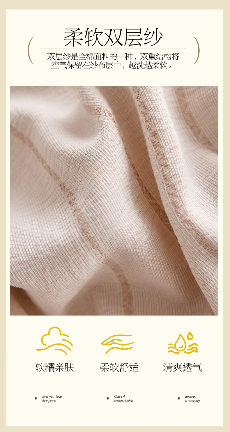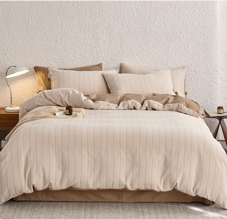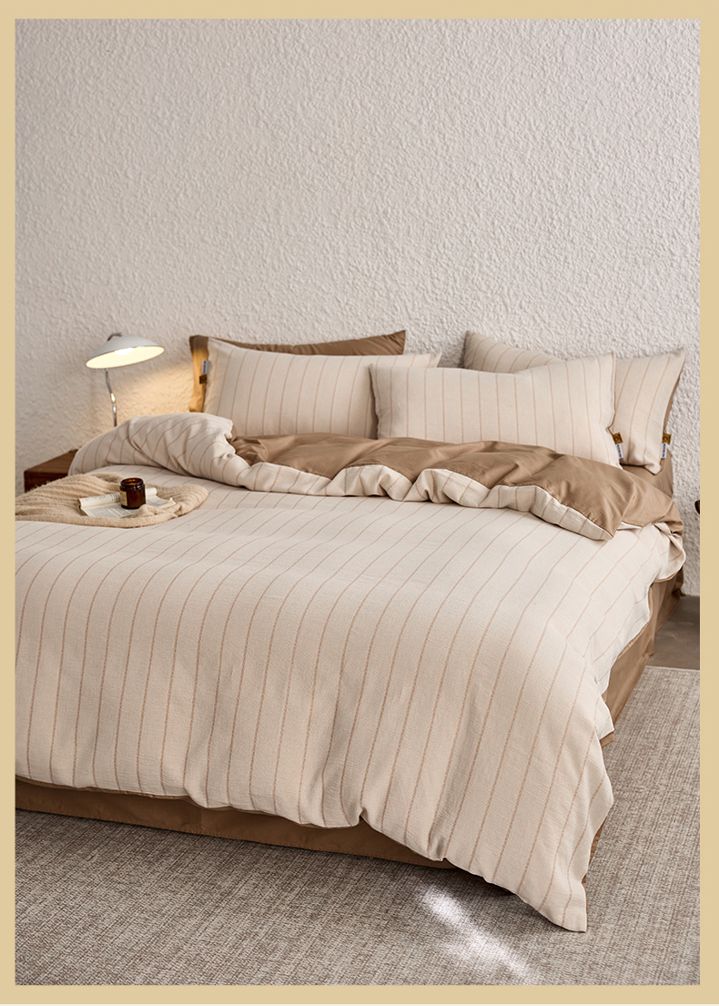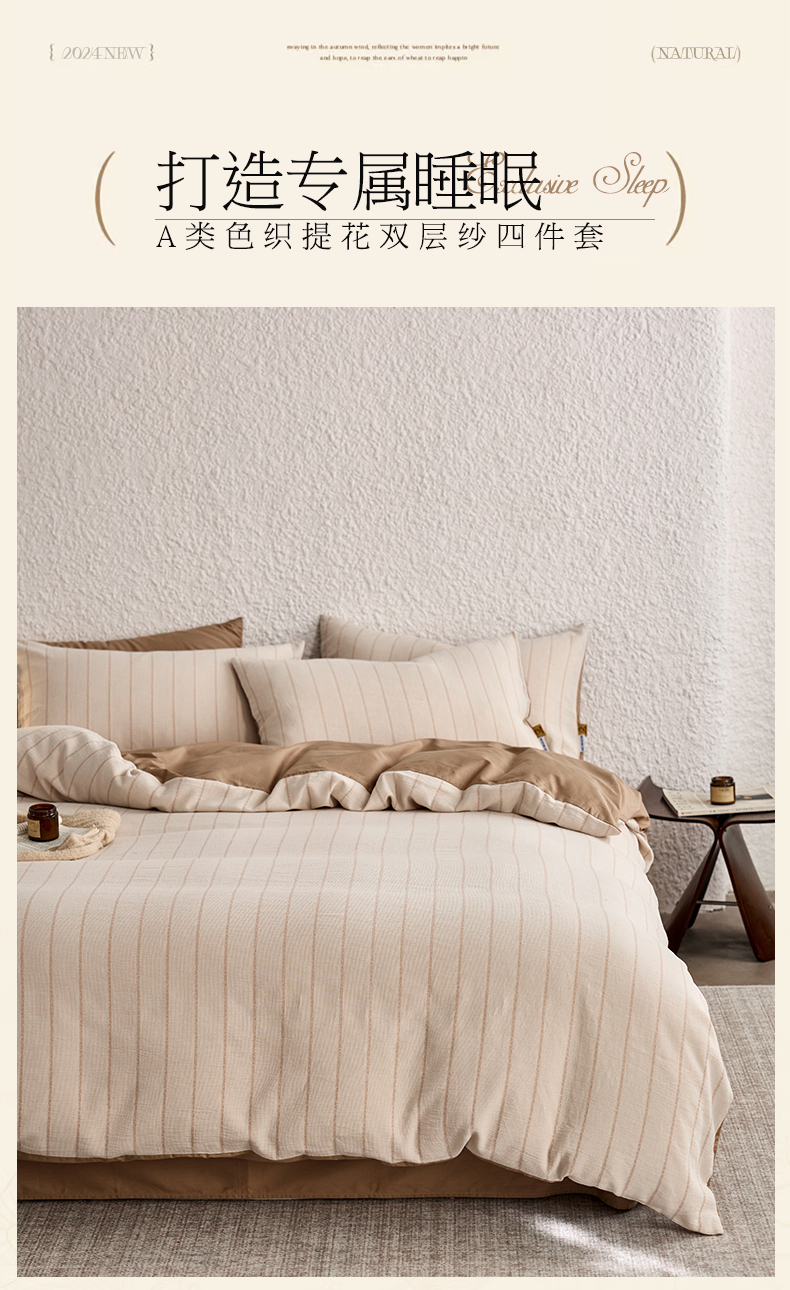 当前位置: 91家纺网 > 商品网购 > 床品套件 > 四件套 > 凯磊家纺 2025新款色织提花双层纱四件套 品质素条-浅咖