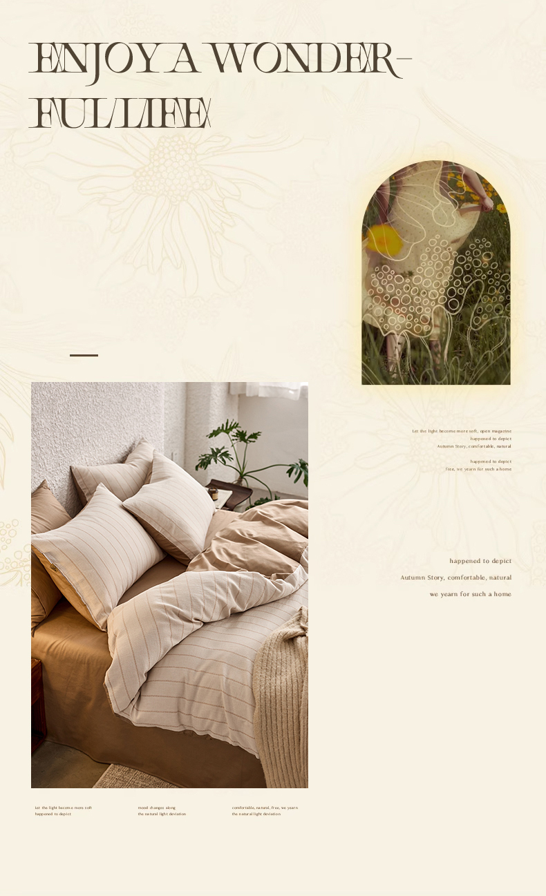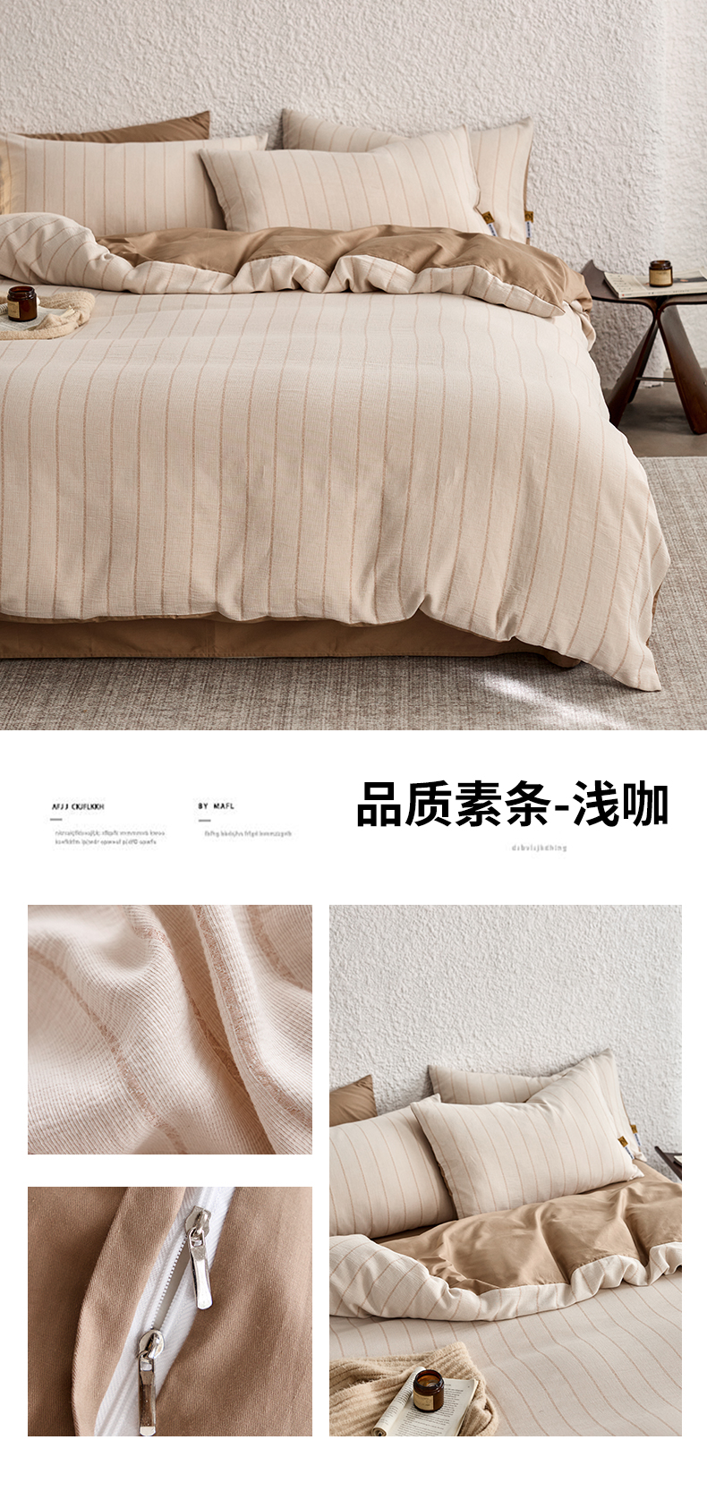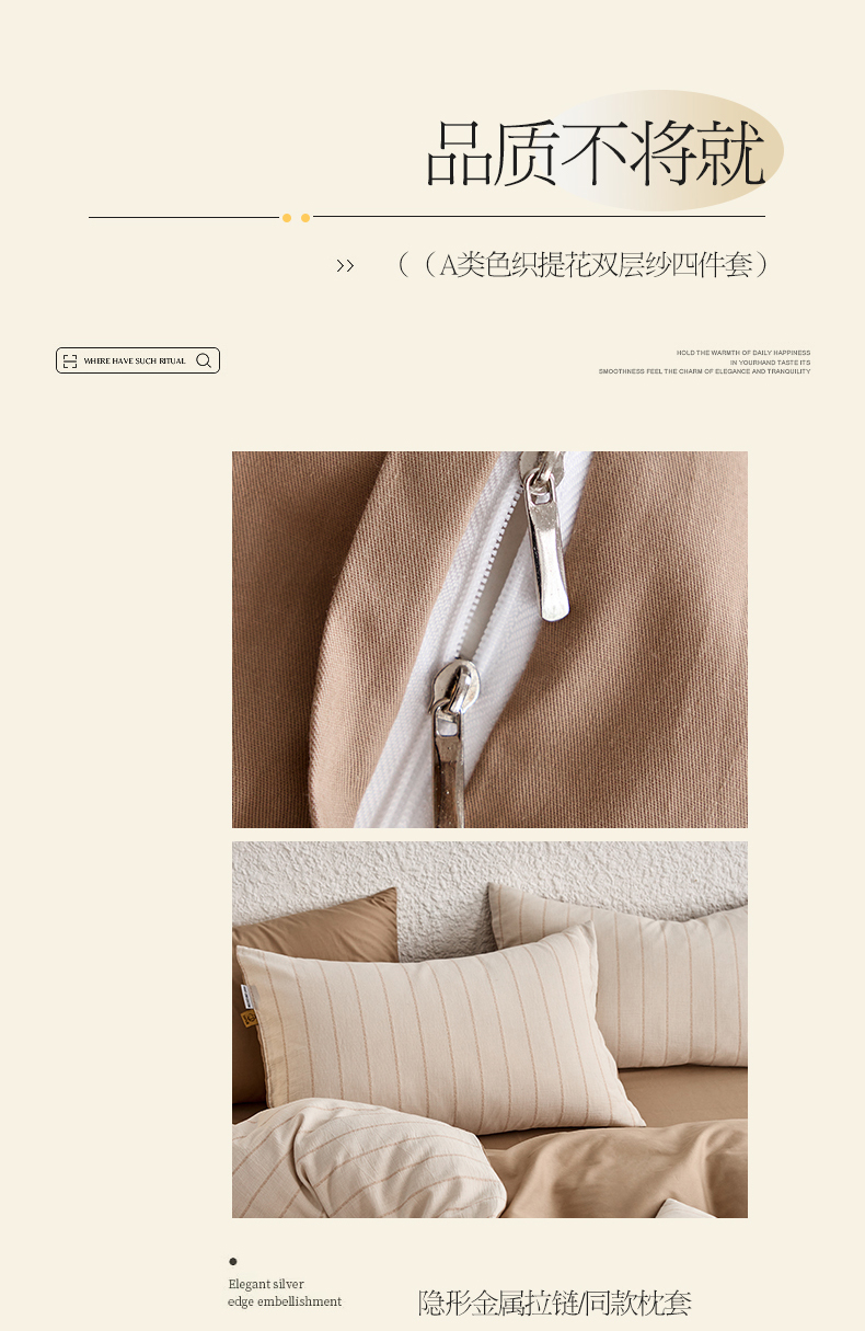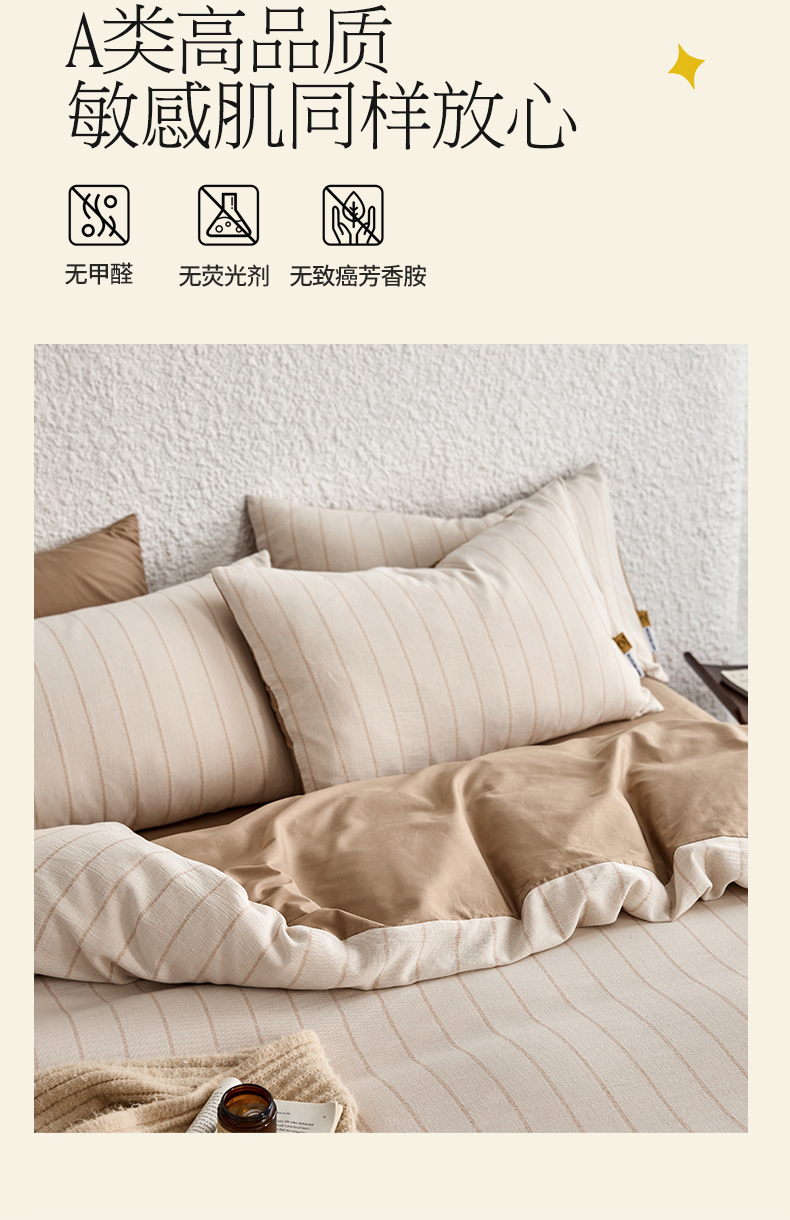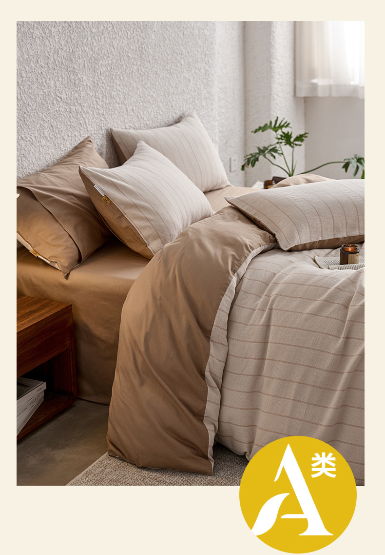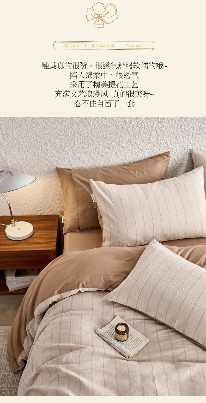 当前位置: 91家纺网 > 商品网购 > 床品套件 > 四件套 > 凯磊家纺 2025新款色织提花双层纱四件套 品质素条-浅咖