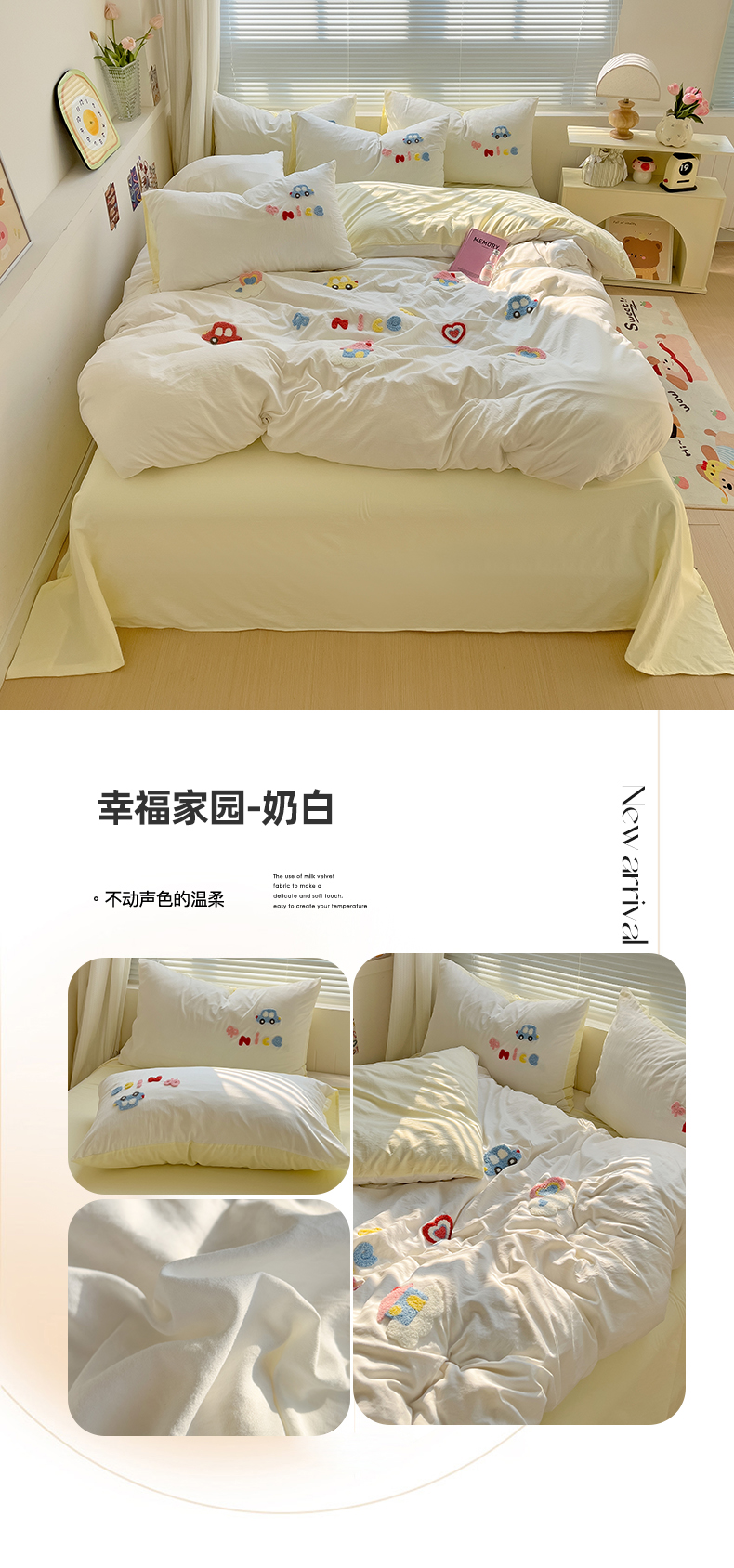 当前位置: 91家纺网 > 商品网购 > 床品套件 > 四件套 > 凯洛奇 2025新款1水洗棉毛巾绣四件套系列【提供买家秀】 幸福家园-奶白