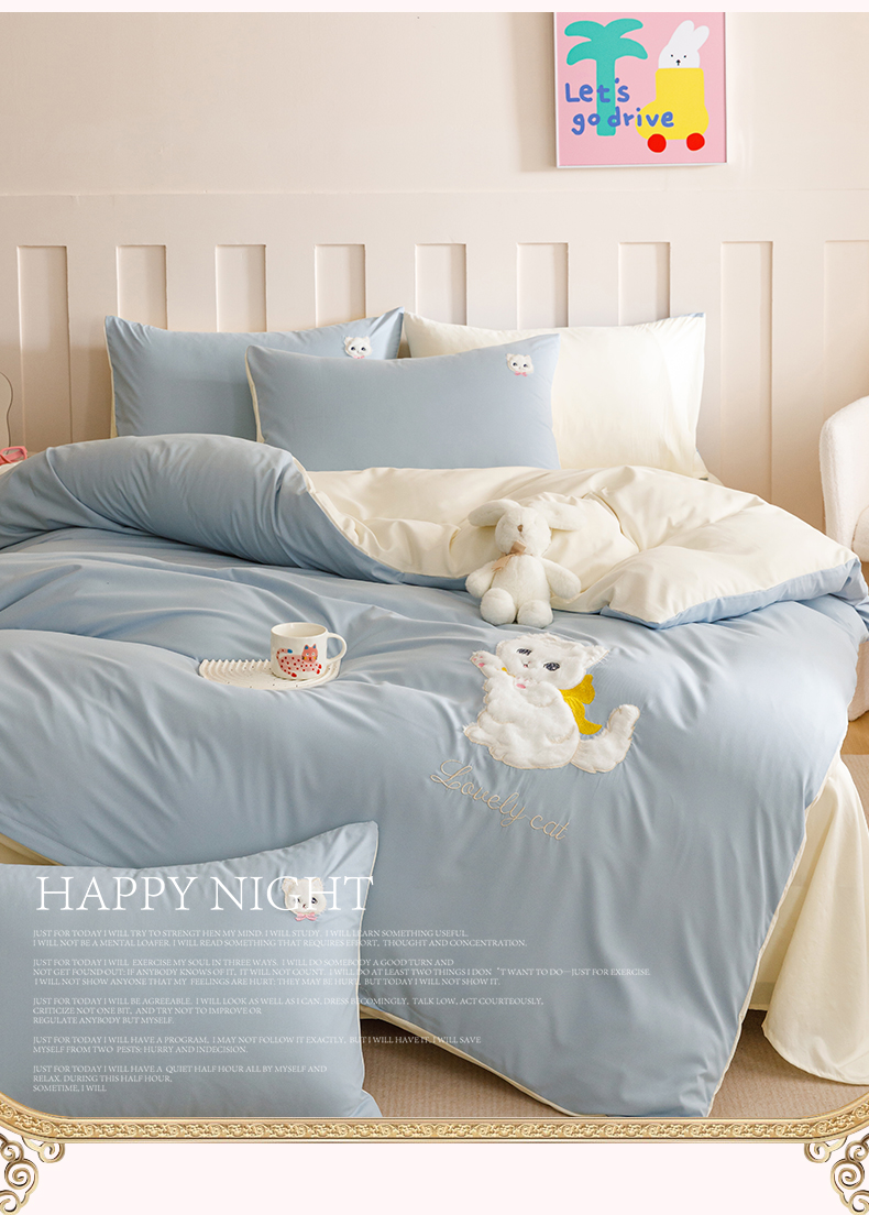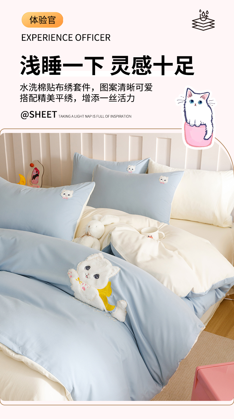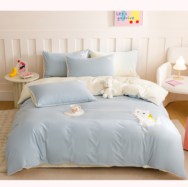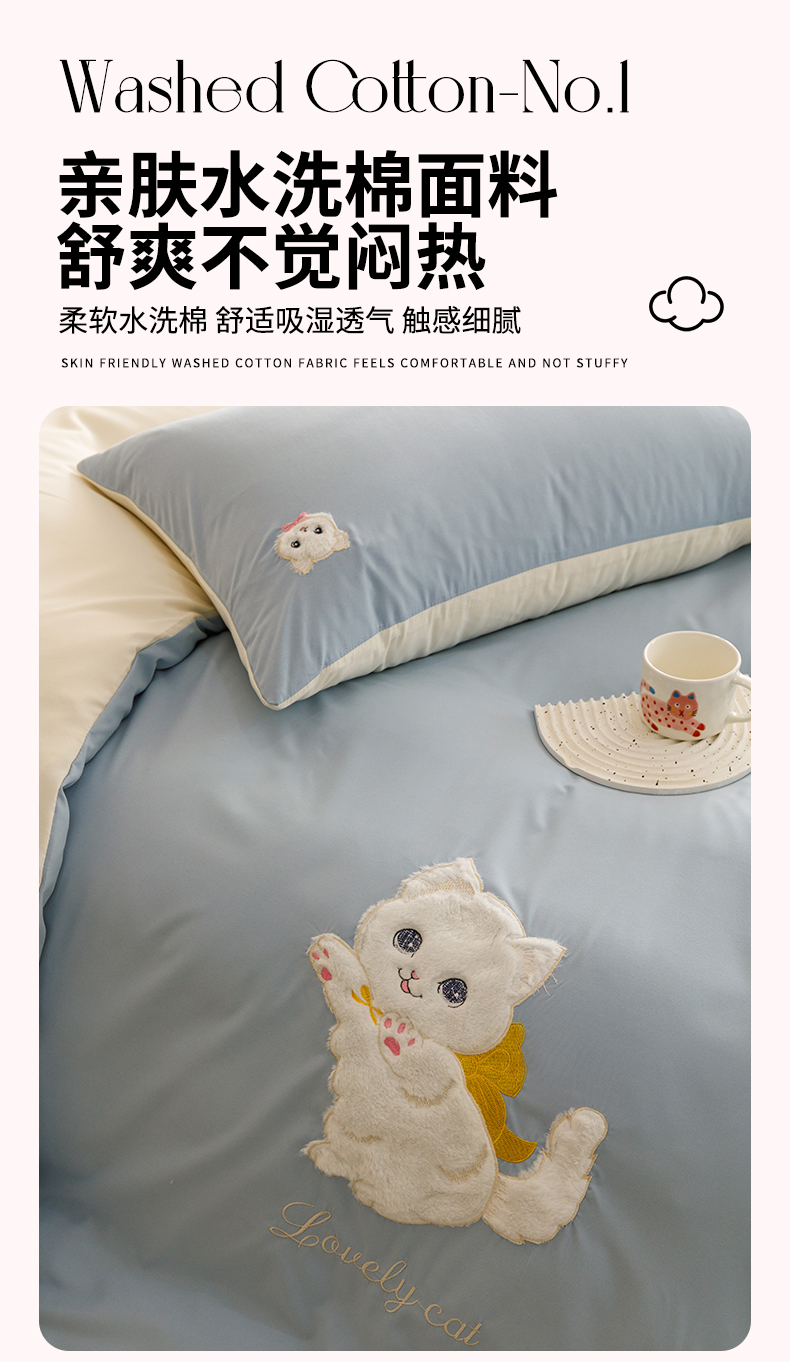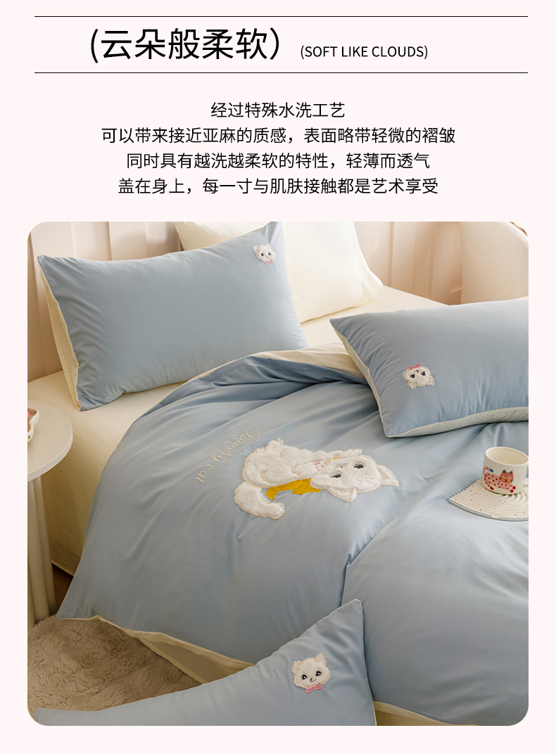 当前位置: 91家纺网 > 商品网购 > 床品套件 > 四件套 > 水洗棉四件套 > (买家秀 爆款花型不断货)无印风纯棉四件套全棉四件套水洗棉三件套床单四件套床笠四件套色织水洗棉四件套 蝴蝶猫咪奶蓝
