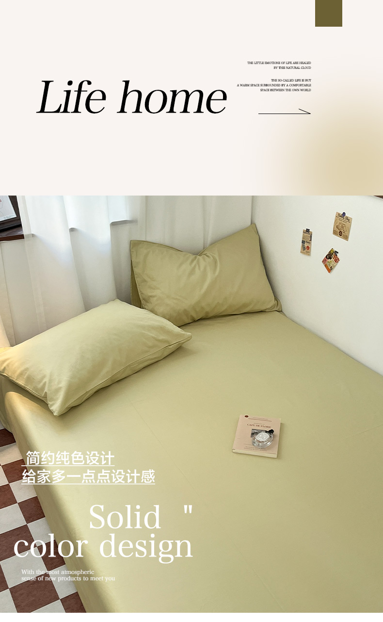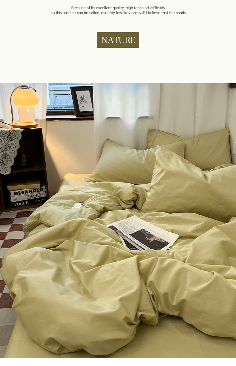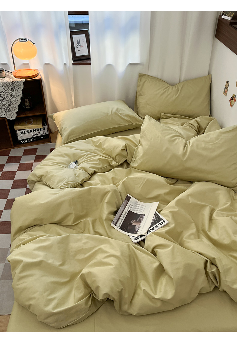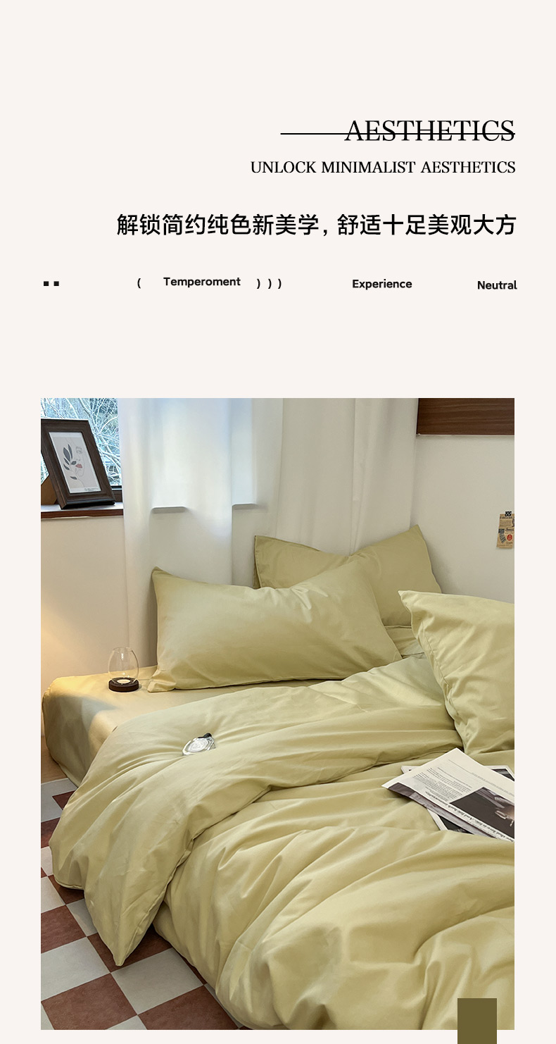 2025新款40支长绒棉ins美拉德色系纯色全棉四件套床笠极简三件套纯棉四件套系列--四件套 抹茶色