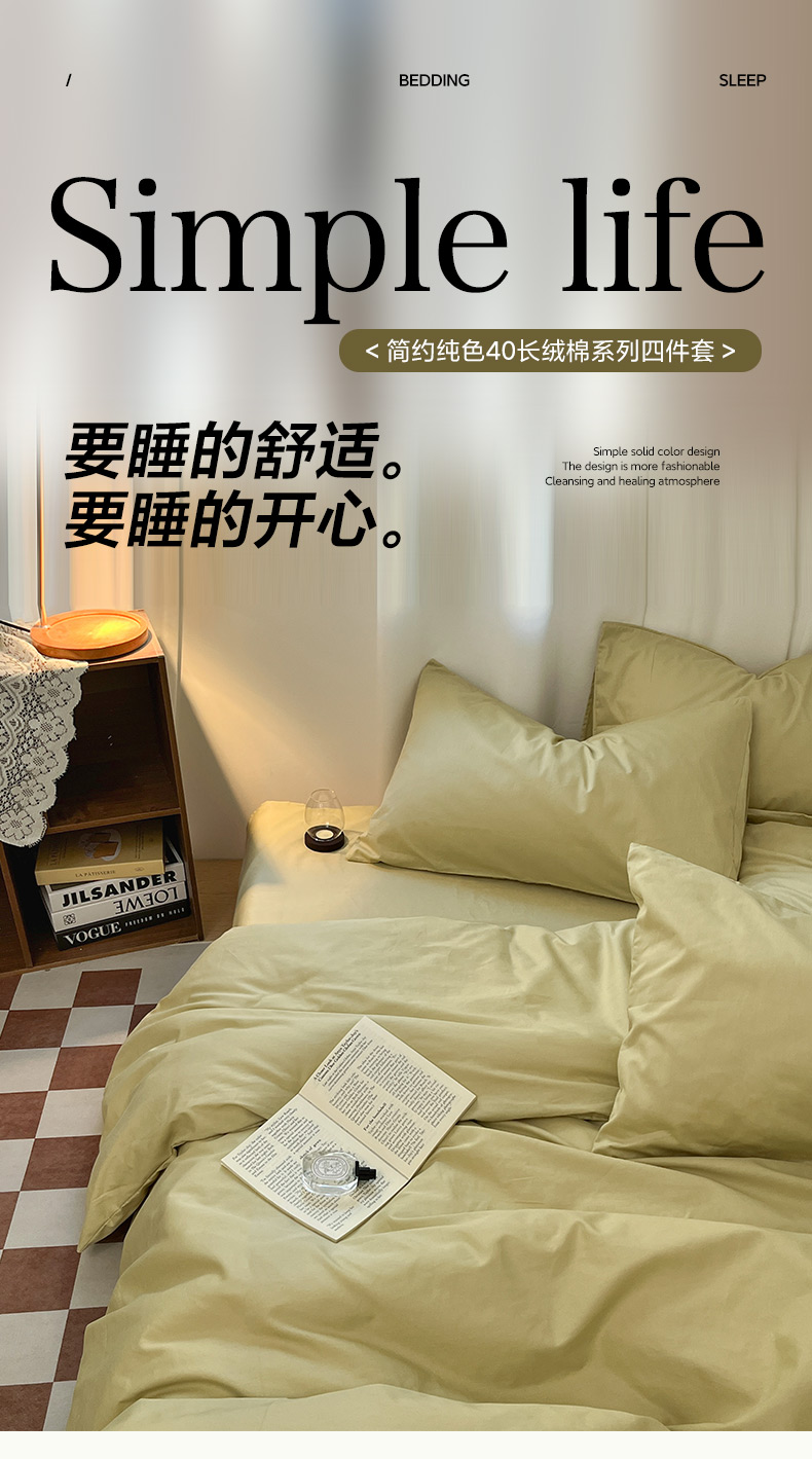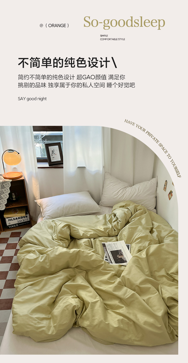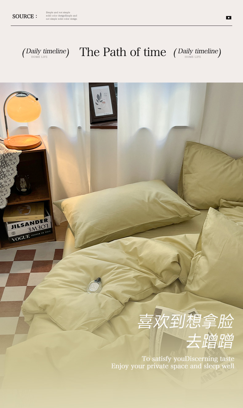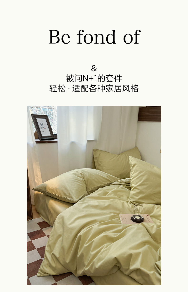 2025新款40支长绒棉ins美拉德色系纯色全棉四件套床笠极简三件套纯棉四件套系列--四件套 抹茶色