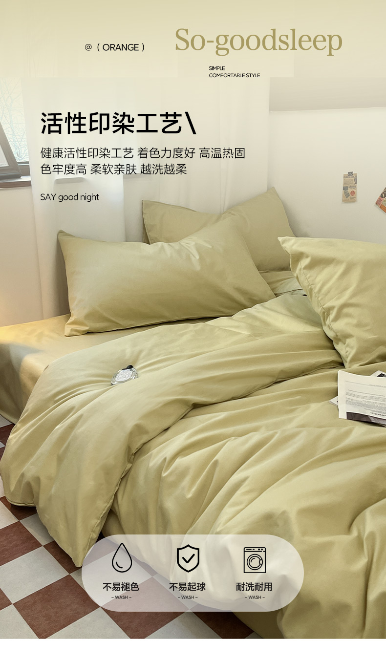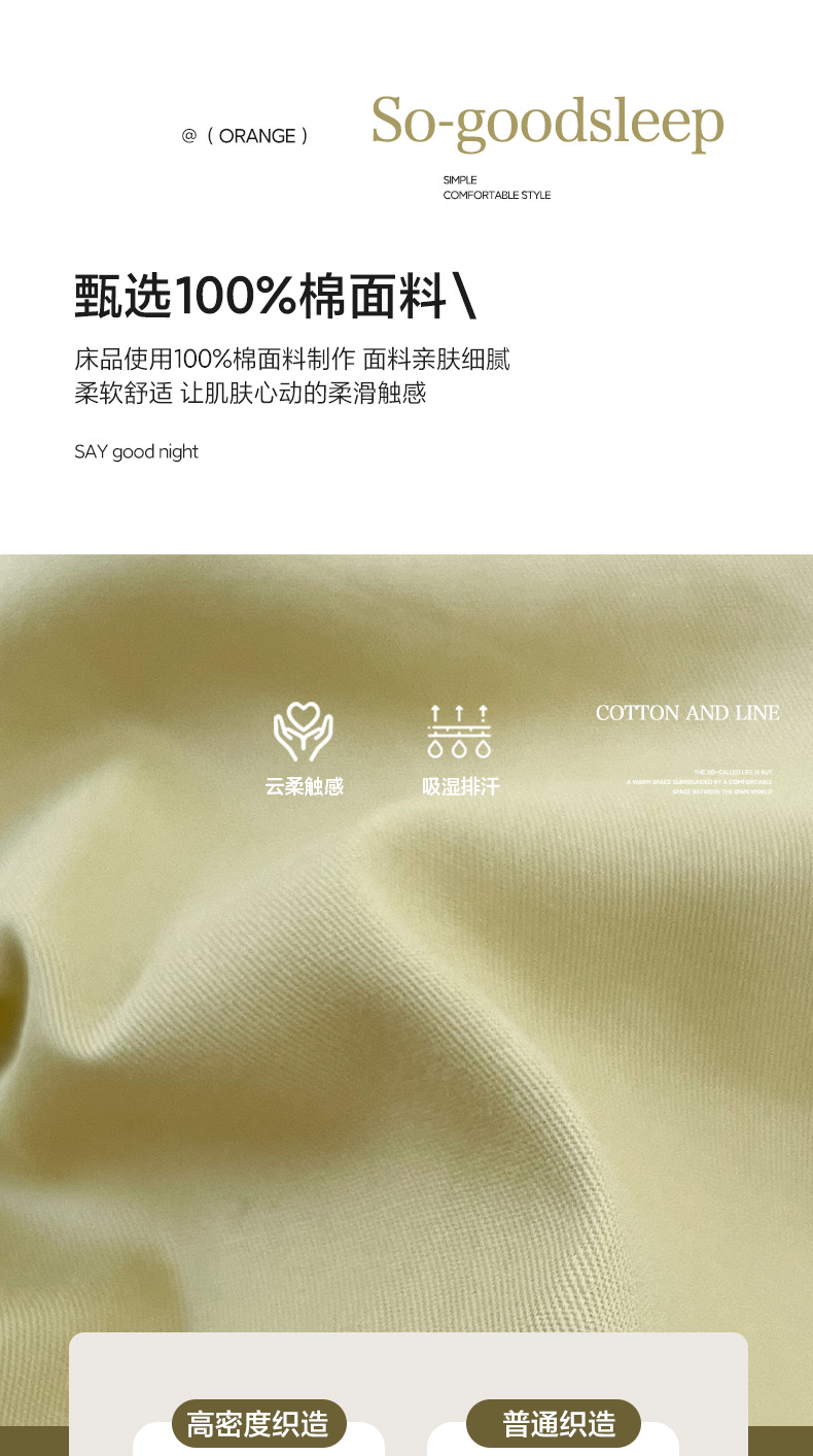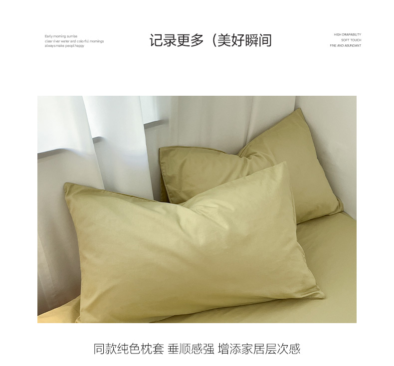 商品名称:2025新款40支长绒棉ins美拉德色系纯色全棉四件套床笠极简三件套纯棉四件套系列--四件套 抹茶色