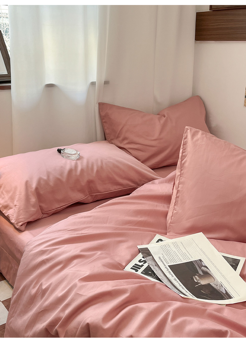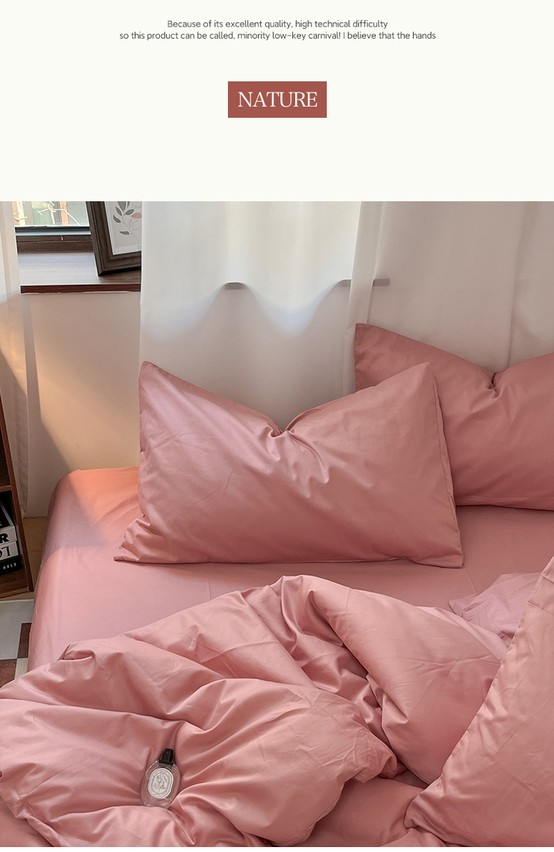 2025新款40长绒棉ins美拉德色系纯色全棉单品四件套床笠四件套系列--单枕套 瑞红