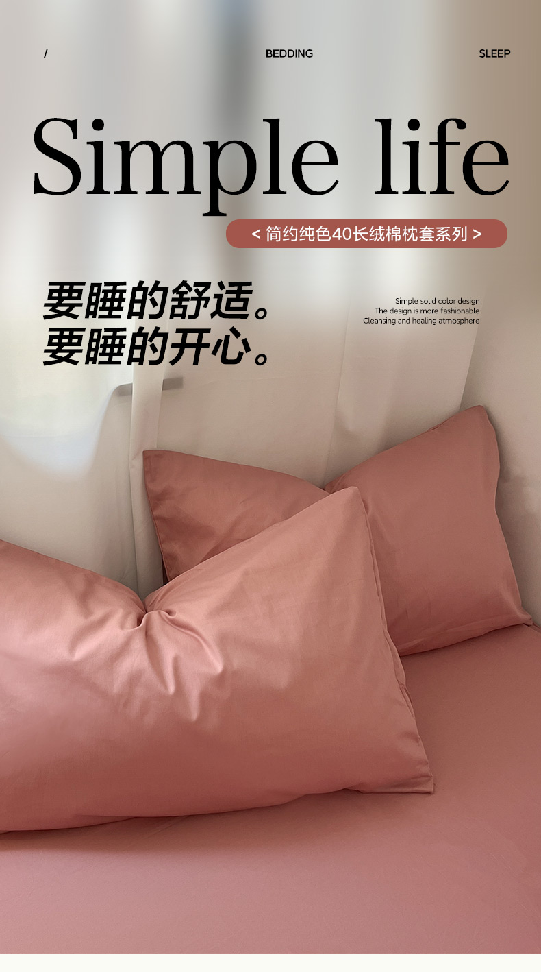 商品名称:2025新款40长绒棉ins美拉德色系纯色全棉单品四件套床笠四件套系列--单枕套 瑞红