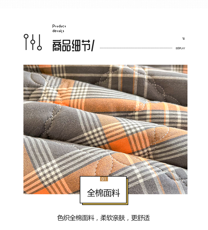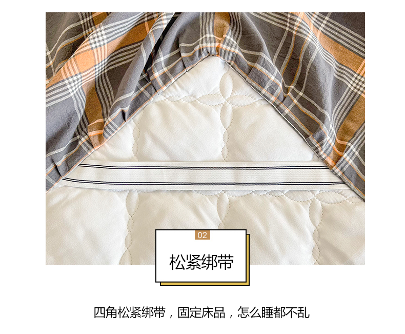 (总)糯米猪家纺 2023新款亲肤棉六面全包夹棉床笠--时尚格,水蓝,深蓝,灰色,白色,米色,粉玉