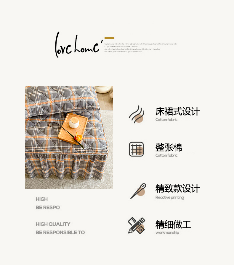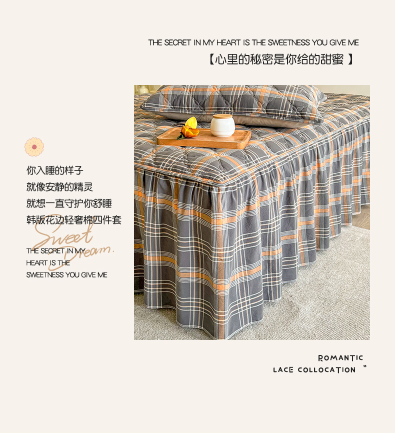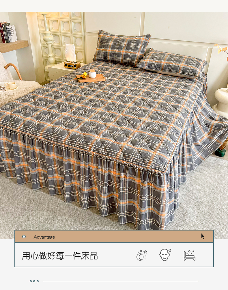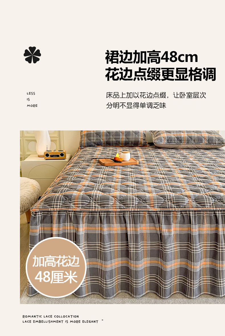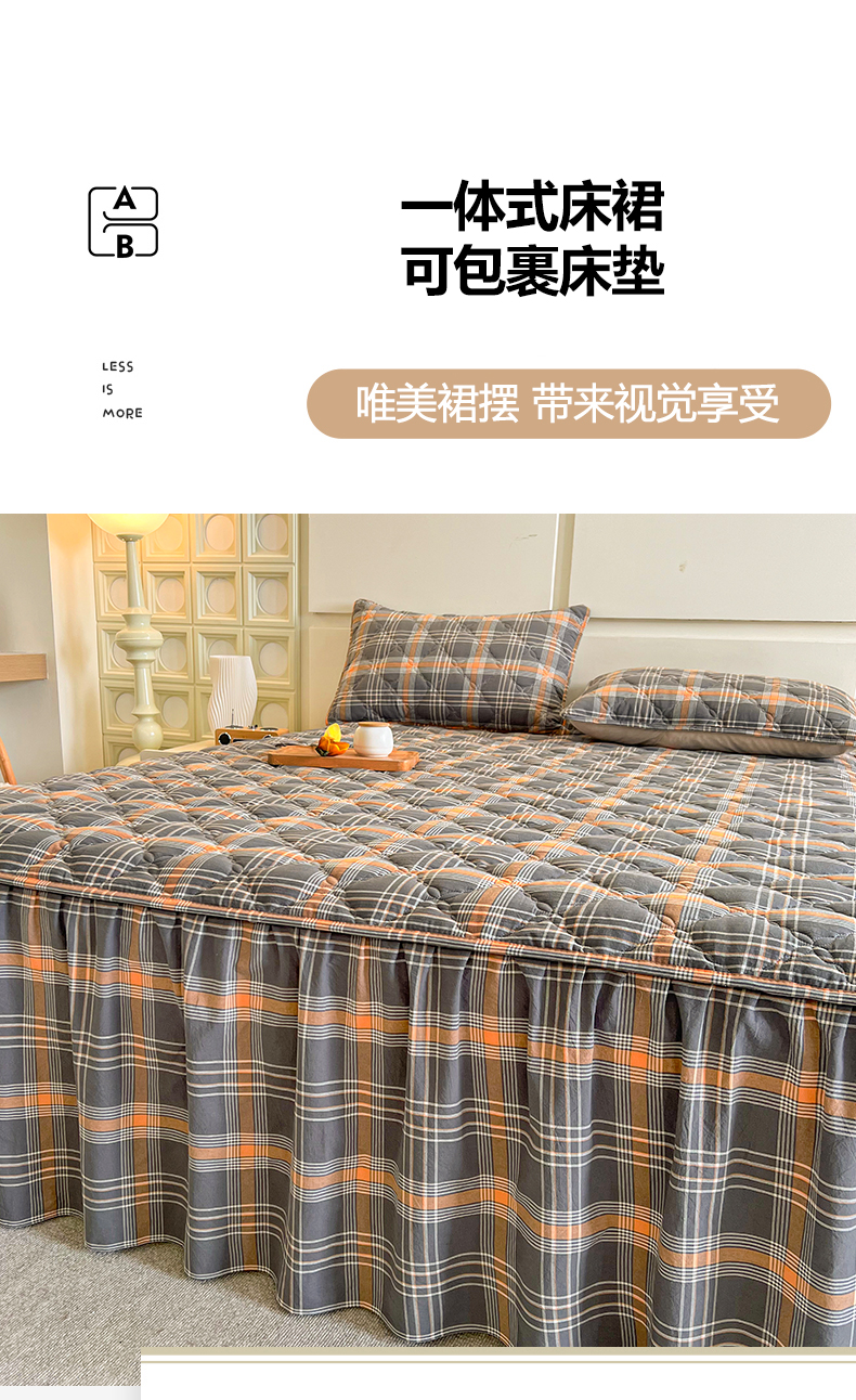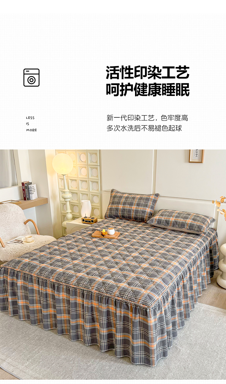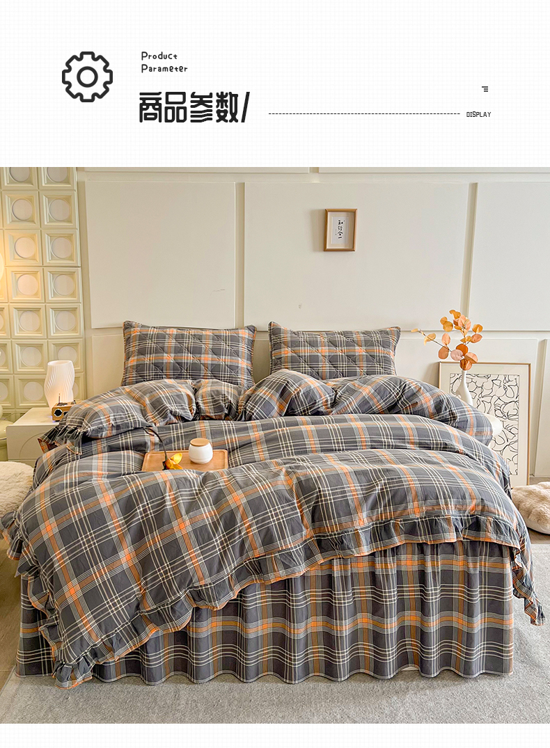 (总)糯米猪家纺 2025新款全棉色织水洗棉床裙,格纹 灰,简兮 兰,兰黄大格,晴空 灰,时尚 灰,雅致 兰