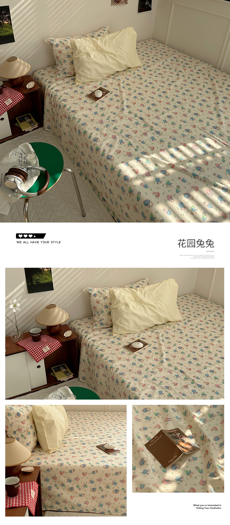 商品名称:尺素 2025新款ins风小红书系列单床单 花园兔兔