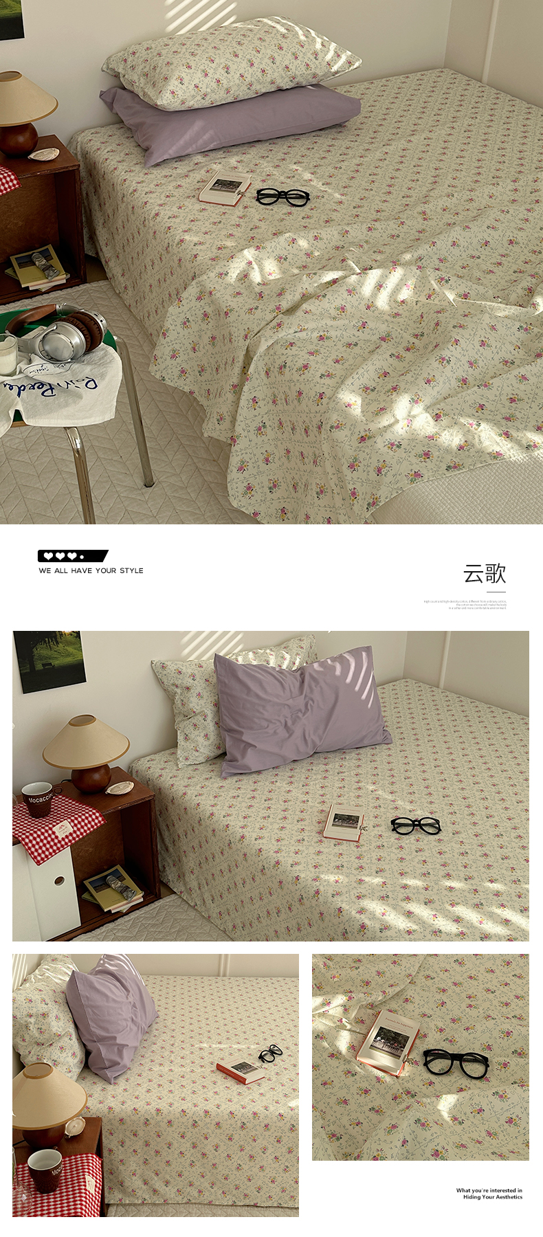(总)尺素 2025新款田园小清新纯棉四件套出口韩国ins博主风全棉被套纯色加大床单1.8床笠印花枕套学生宿舍三件套,春不晚 桃粉,花似锦 奶白,紫鸢千夏紫