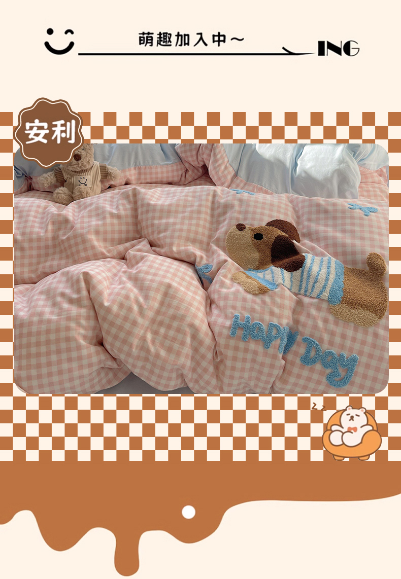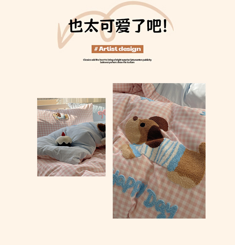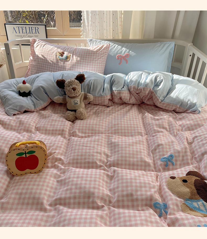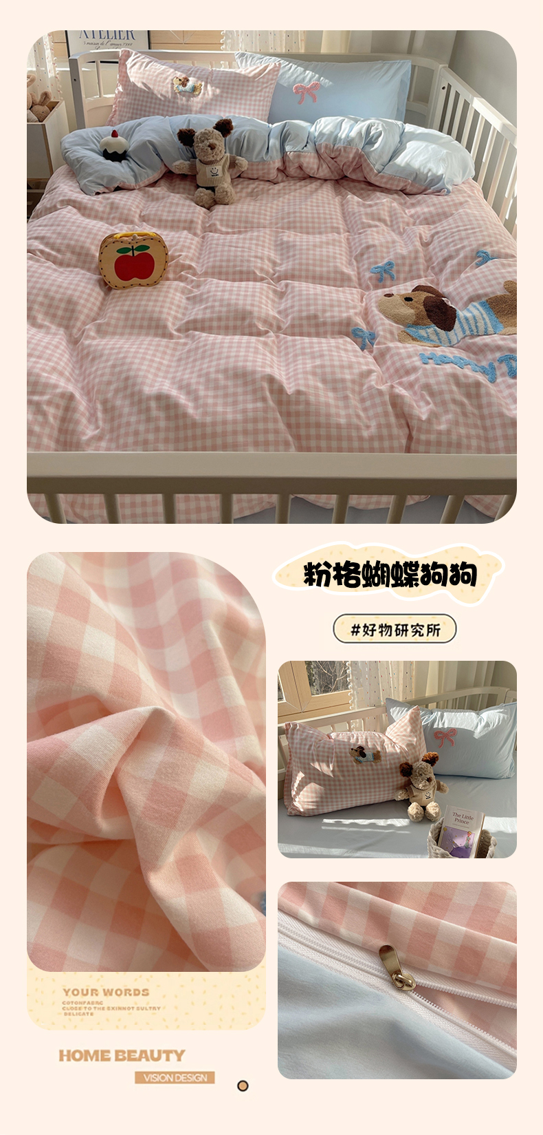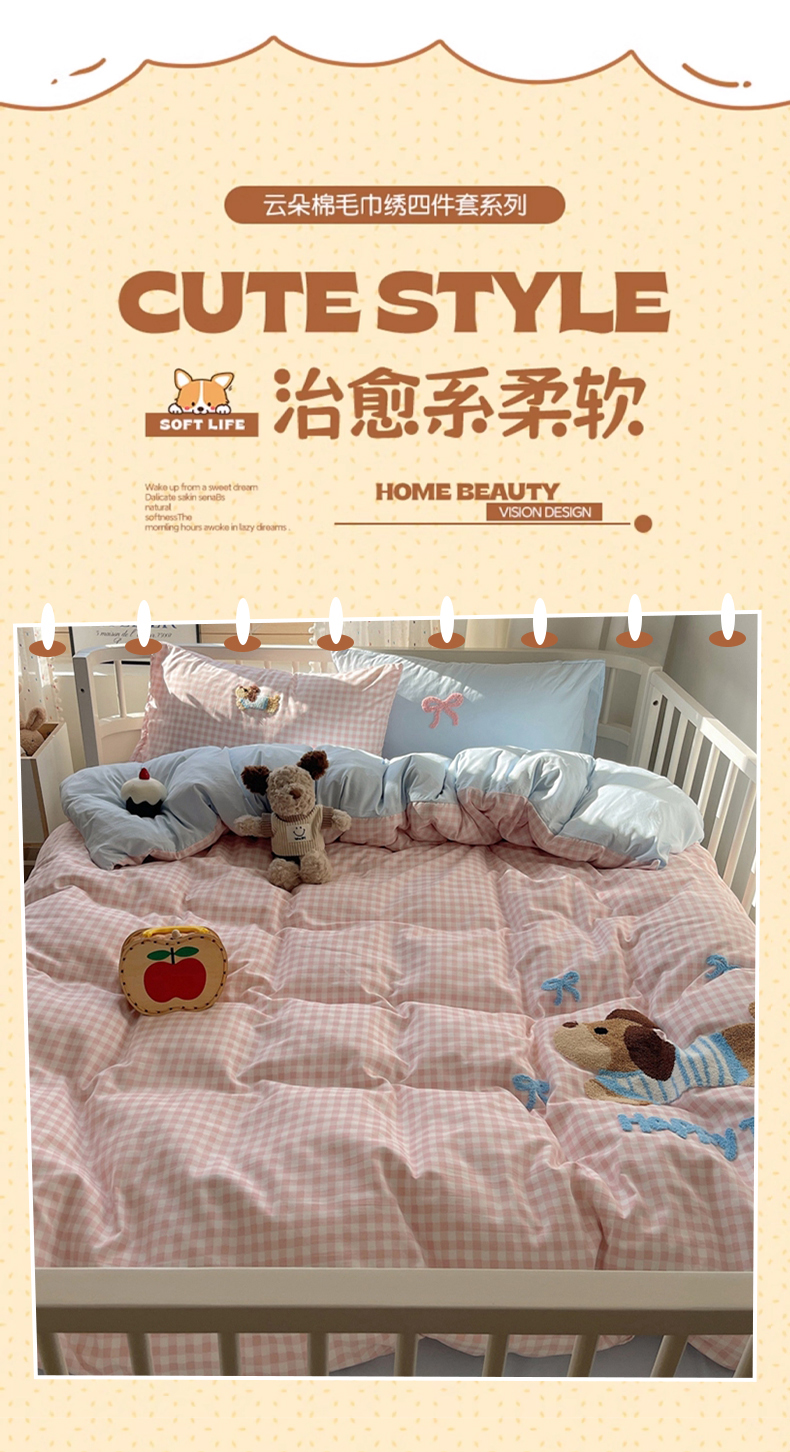 当前位置: 91家纺网 > 商品网购 > 床品套件 > 四件套 > 红嘴企鹅 2025新款水洗棉毛巾绣四件套 粉格蝴蝶结狗狗