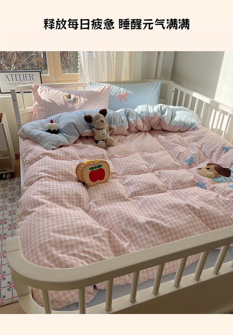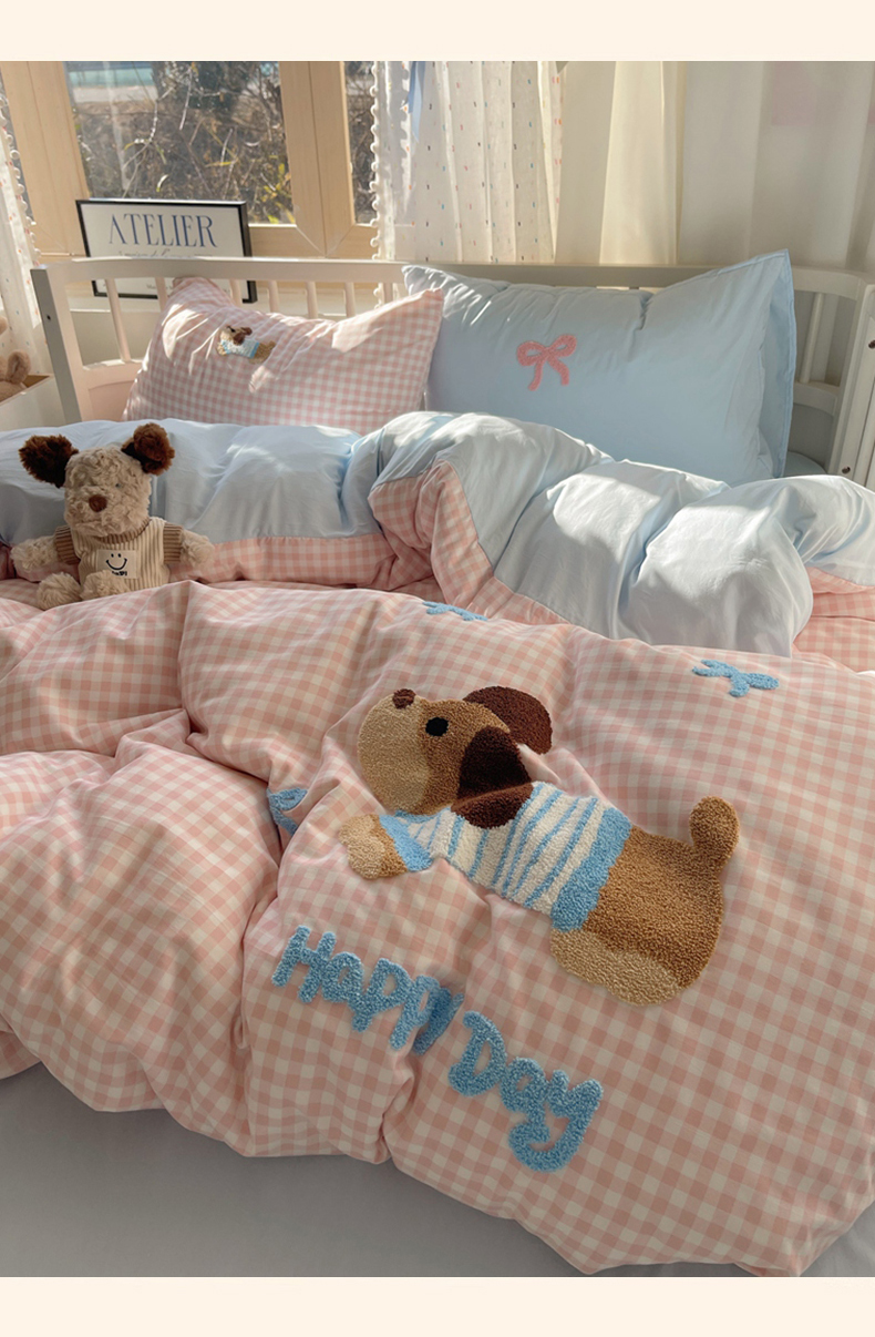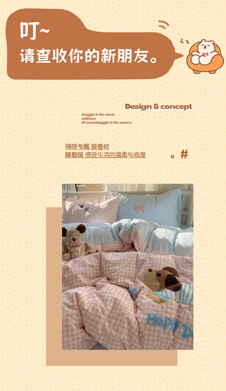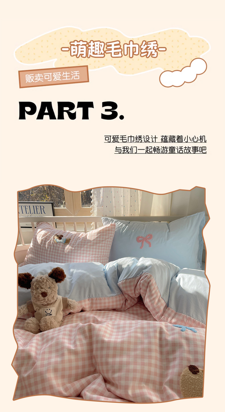 当前位置: 91家纺网 > 商品网购 > 床品套件 > 四件套 > 红嘴企鹅 2025新款水洗棉毛巾绣四件套 粉格蝴蝶结狗狗