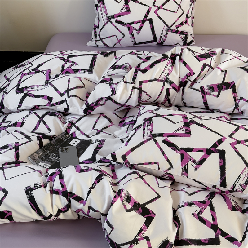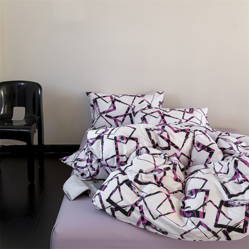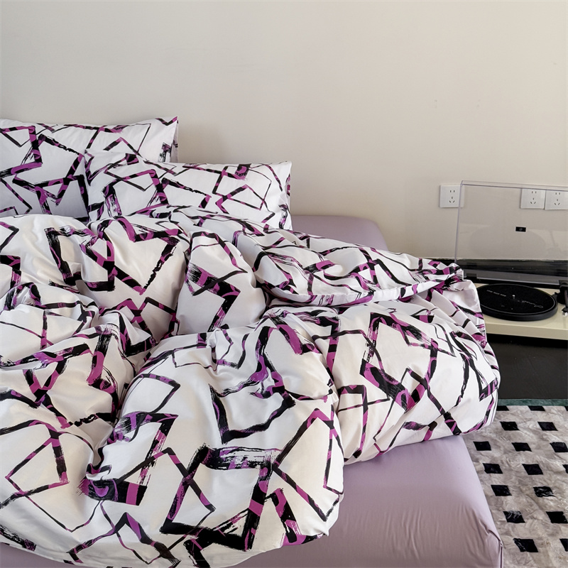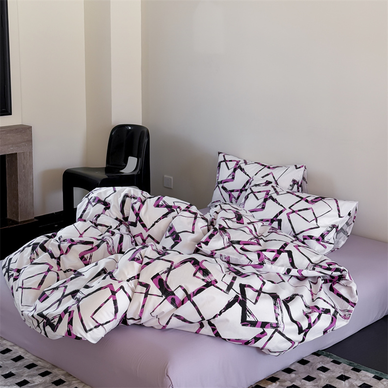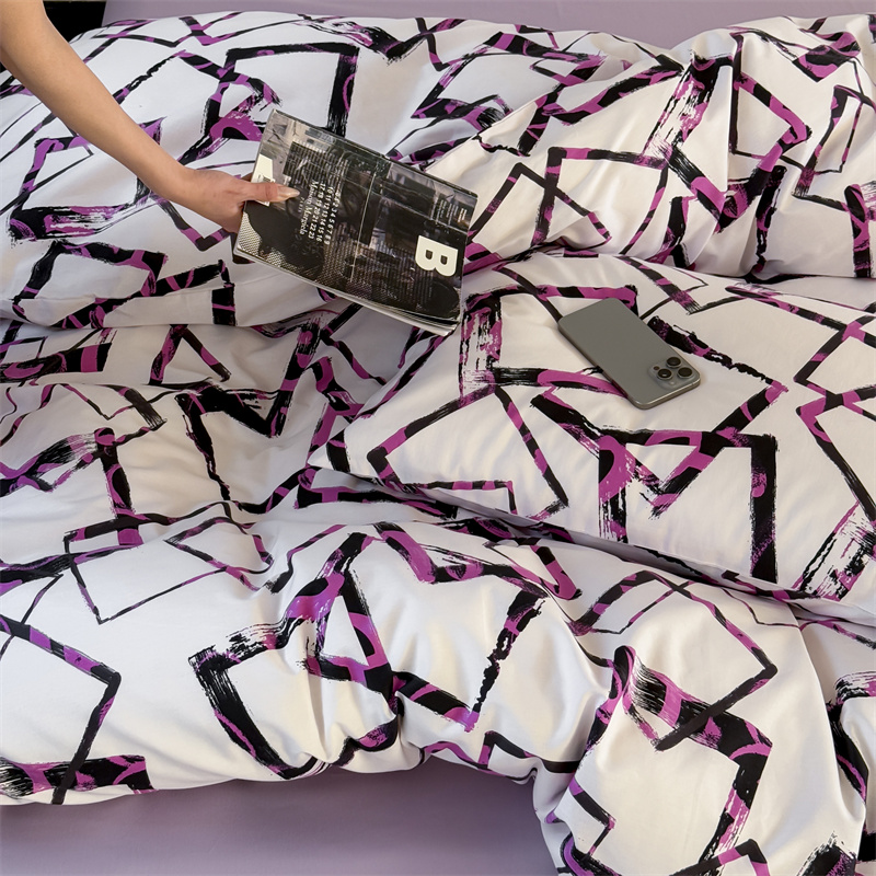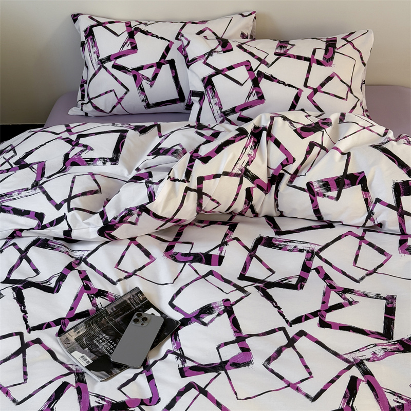 当前位置: 91家纺网 > 商品网购 > 床品套件 > 四件套 > 全棉普通四件套 > 窝米 2025新款全棉新品13370四件套 简约休闲风系列(悦溪、几何乐园) 几何乐园紫