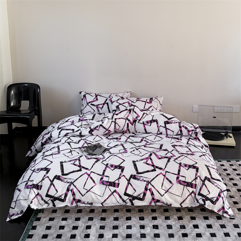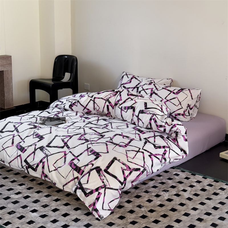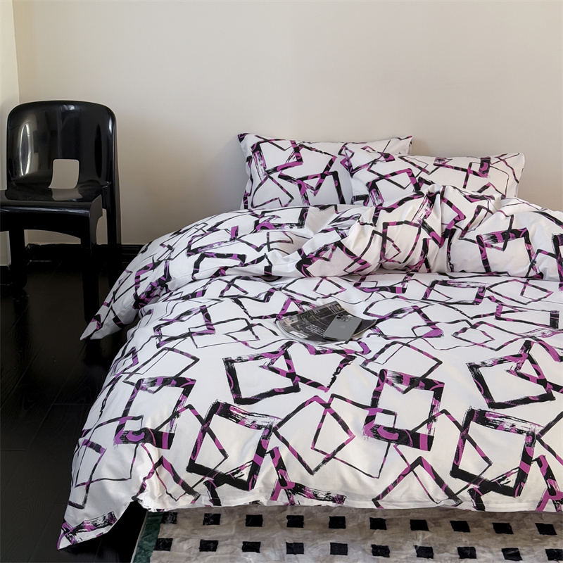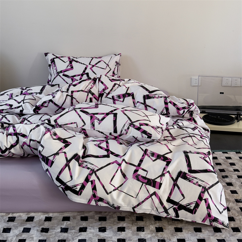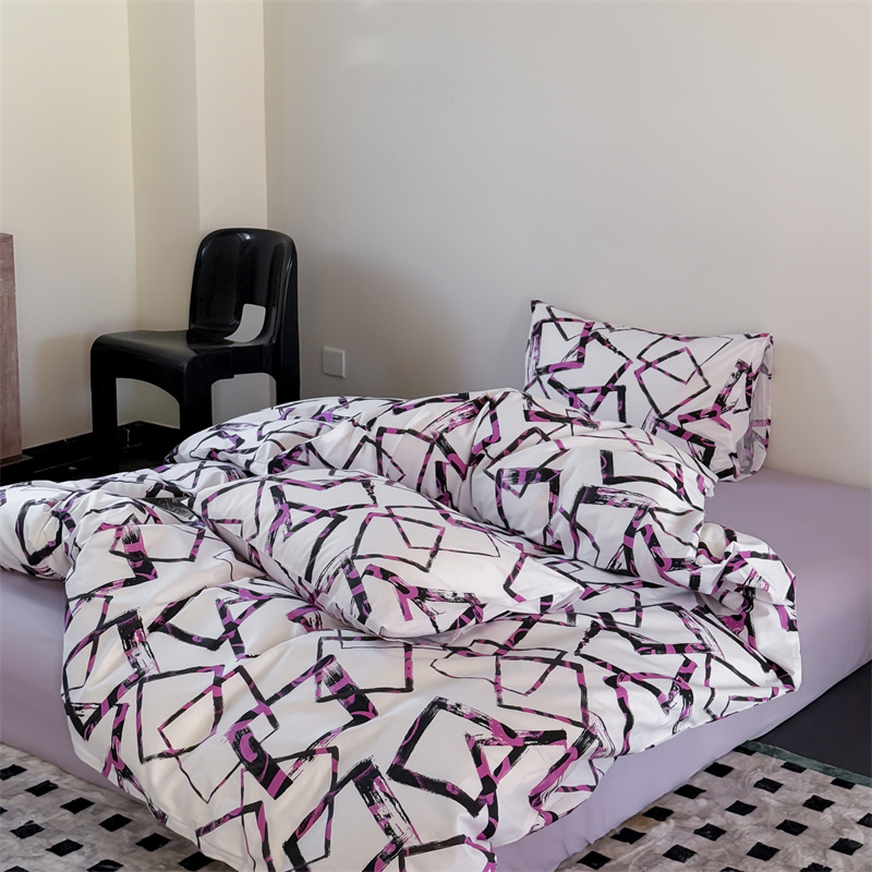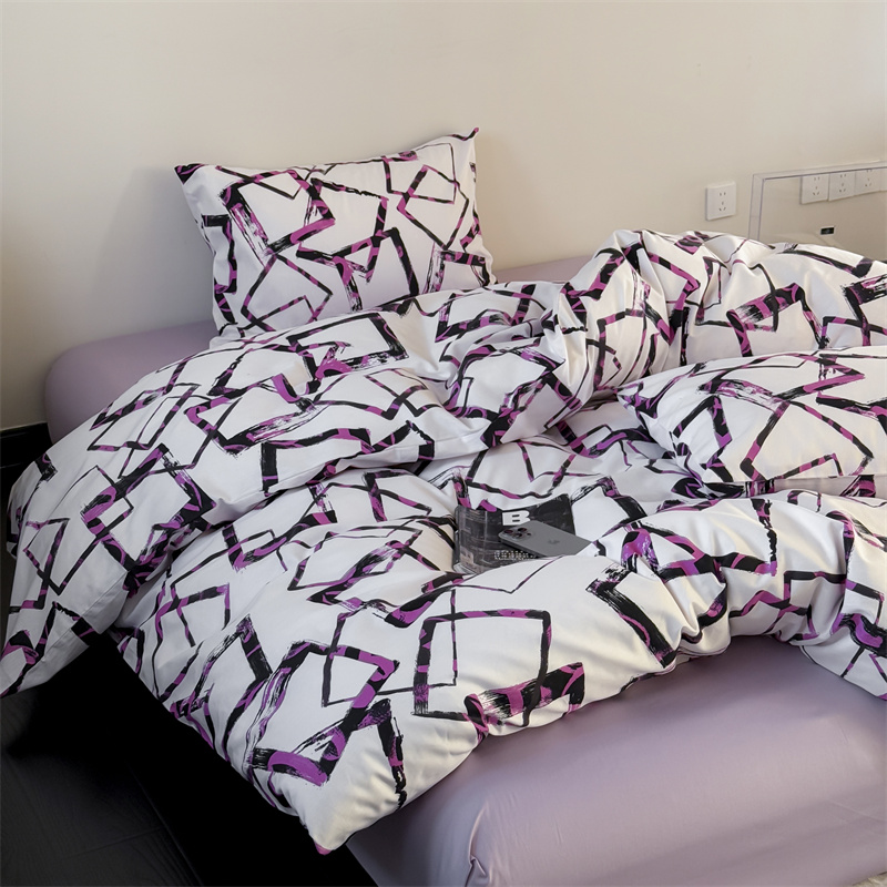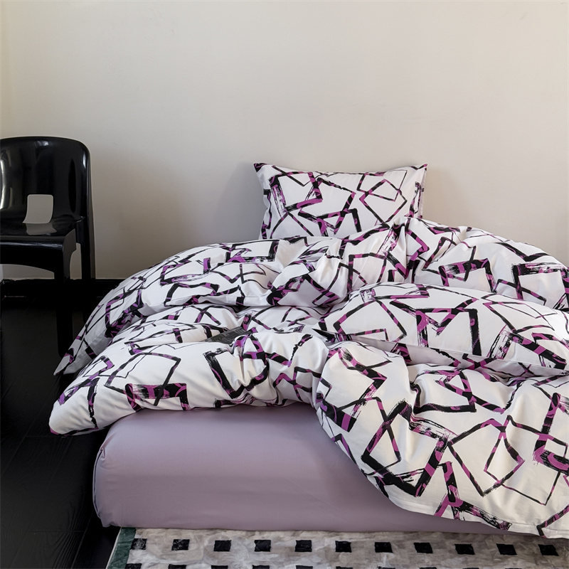 当前位置: 91家纺网 > 商品网购 > 床品套件 > 四件套 > 全棉普通四件套 > 窝米 2025新款全棉新品13370四件套 简约休闲风系列(悦溪、几何乐园) 几何乐园紫