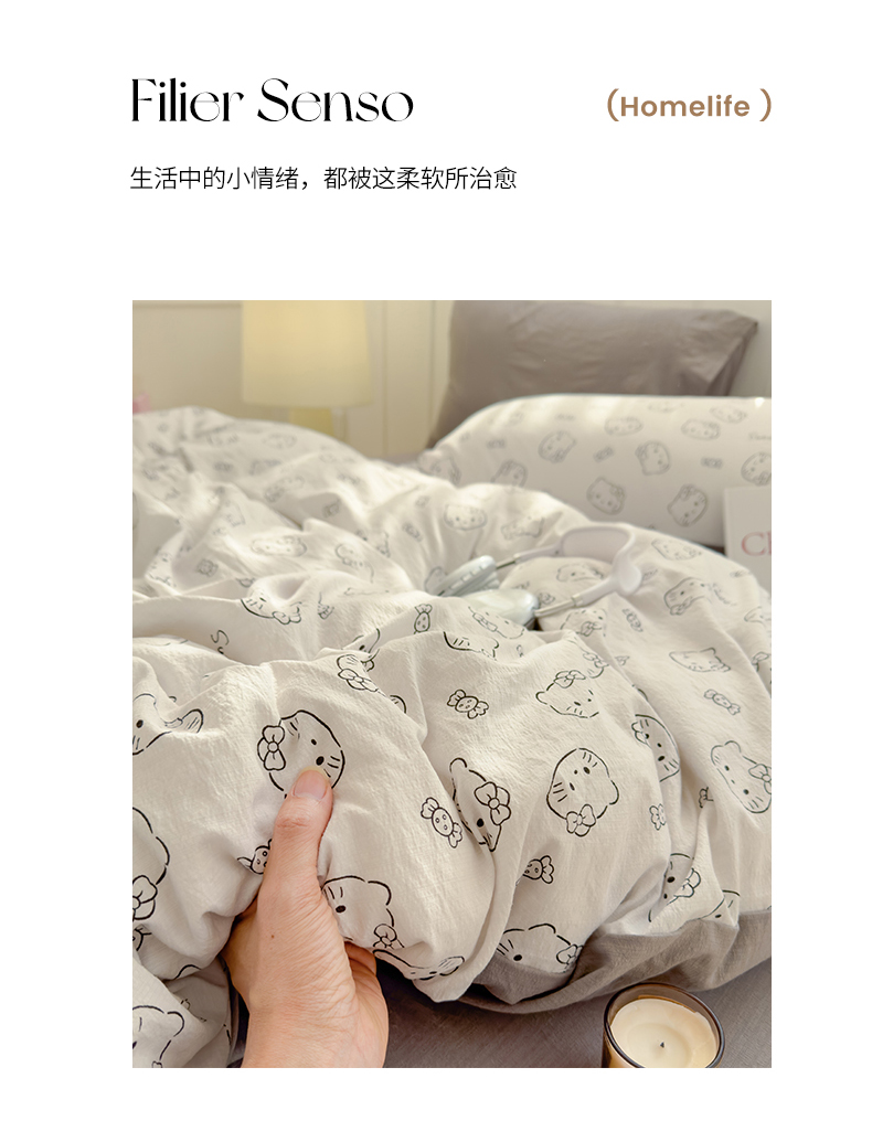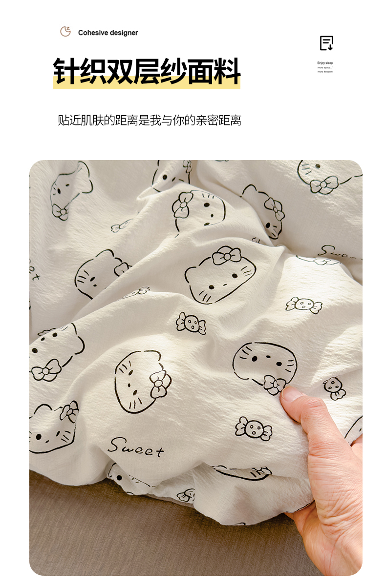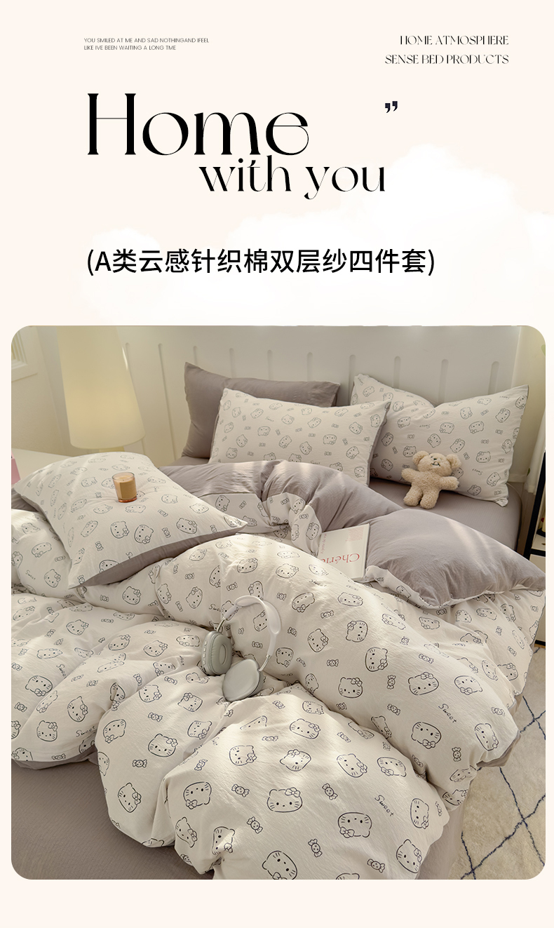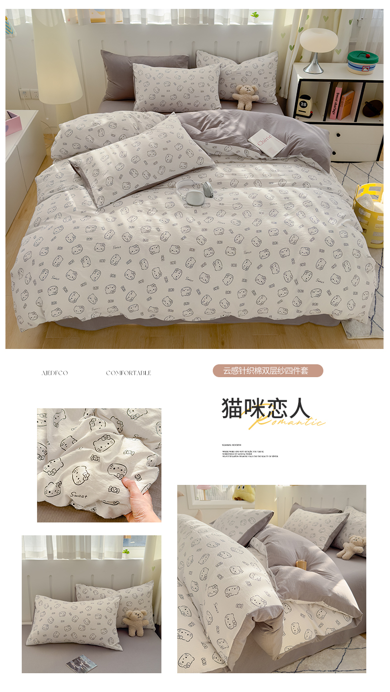 当前位置: 91家纺网 > 商品网购 > 床品套件 > 四件套 > 其它四件套 > 宏源家纺 2025新款A类超柔有氧云感双层纱四件套 猫咪恋人