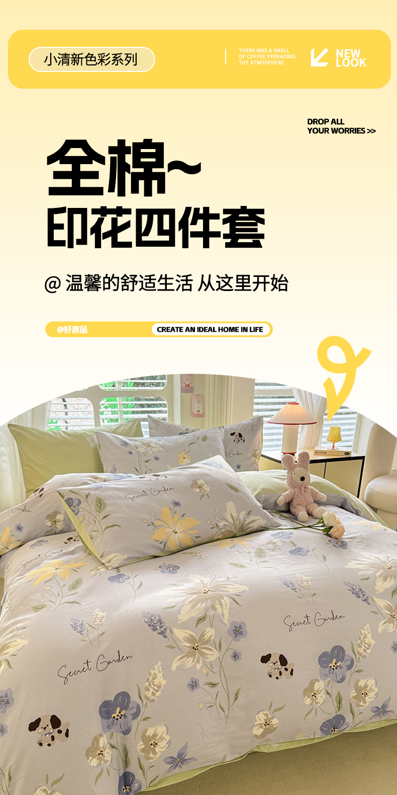 当前位置: 91家纺网 > 商品网购 > 床品套件 > 四件套 > 全棉普通四件套 > 秋艳家纺 2025新款全棉印花四件套 花朝月夕