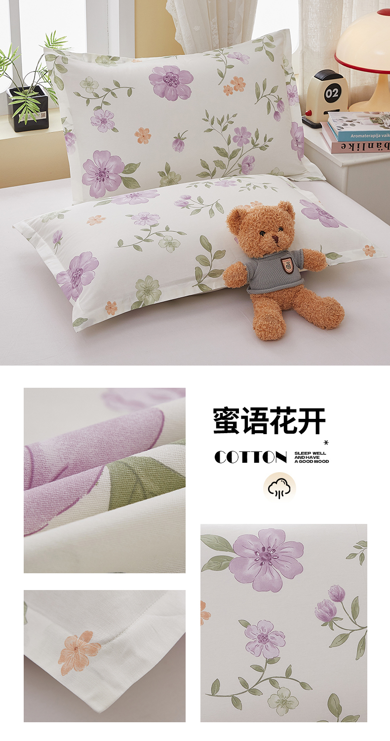 翎盈家纺 2025新款ins风小清新纯棉印花枕套 蜜语花开