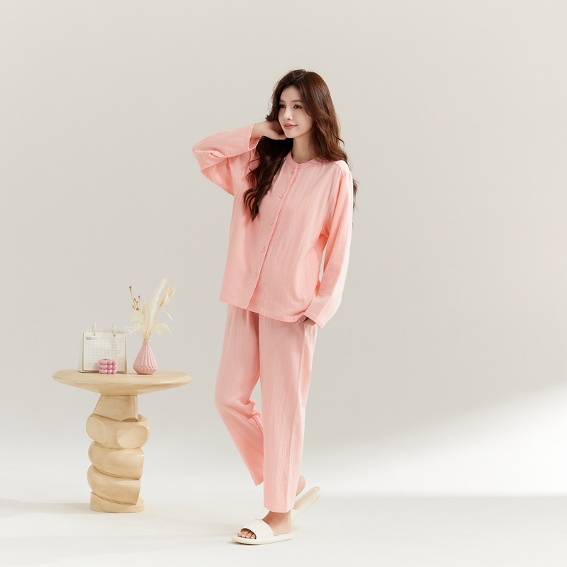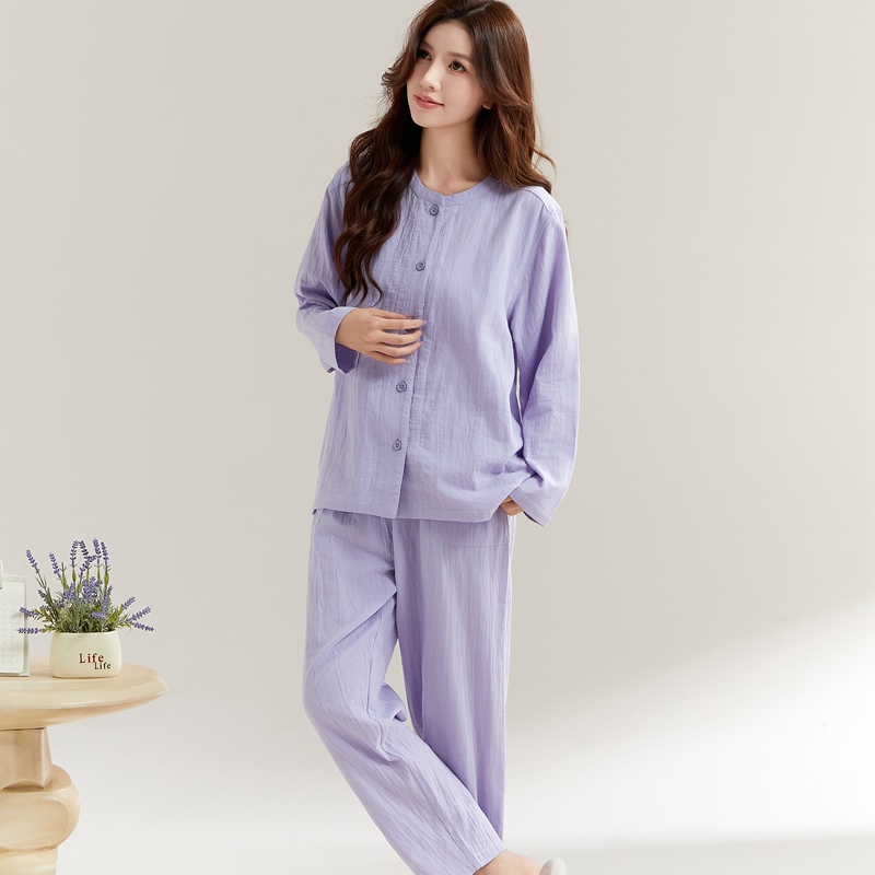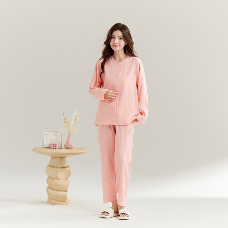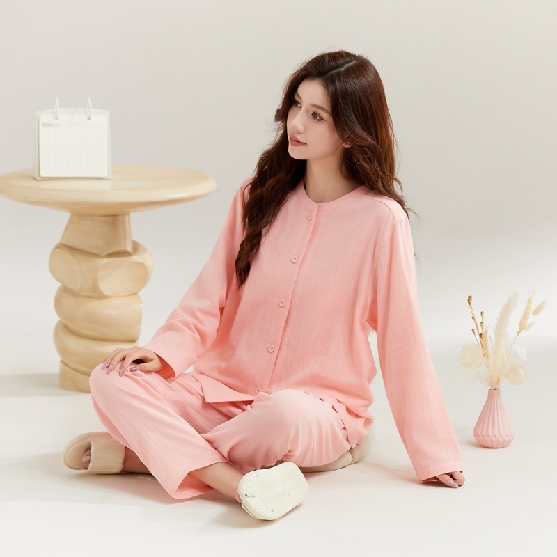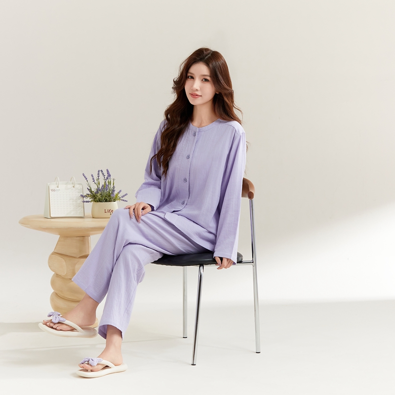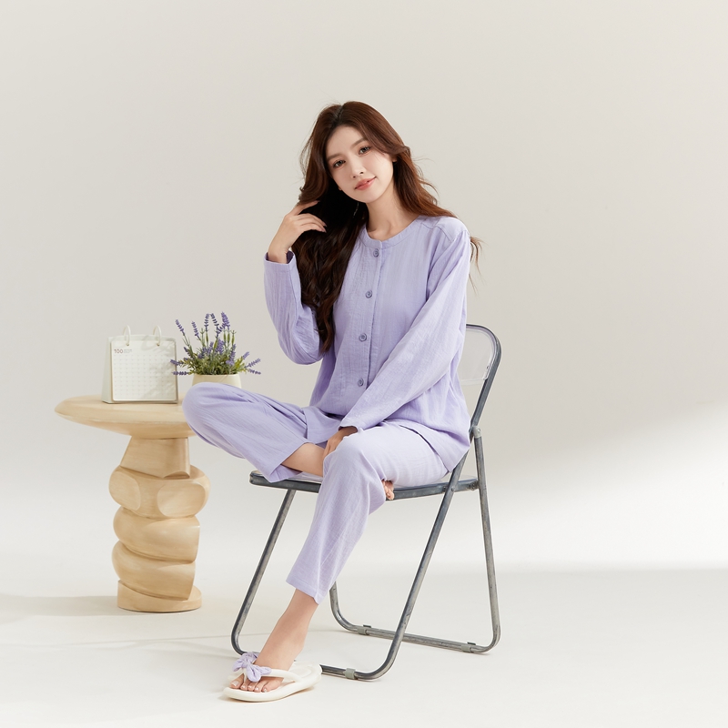 (总)玖弘家居 2025新款家居服系列-纯色系列【控价 抖音69.9 视频号 89.9 小红书 89.9】,纯色粉长袖女款,纯色紫长袖女款