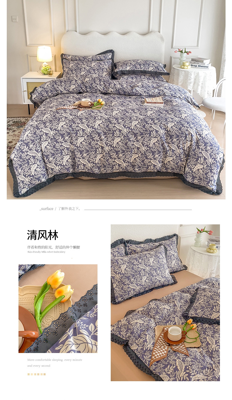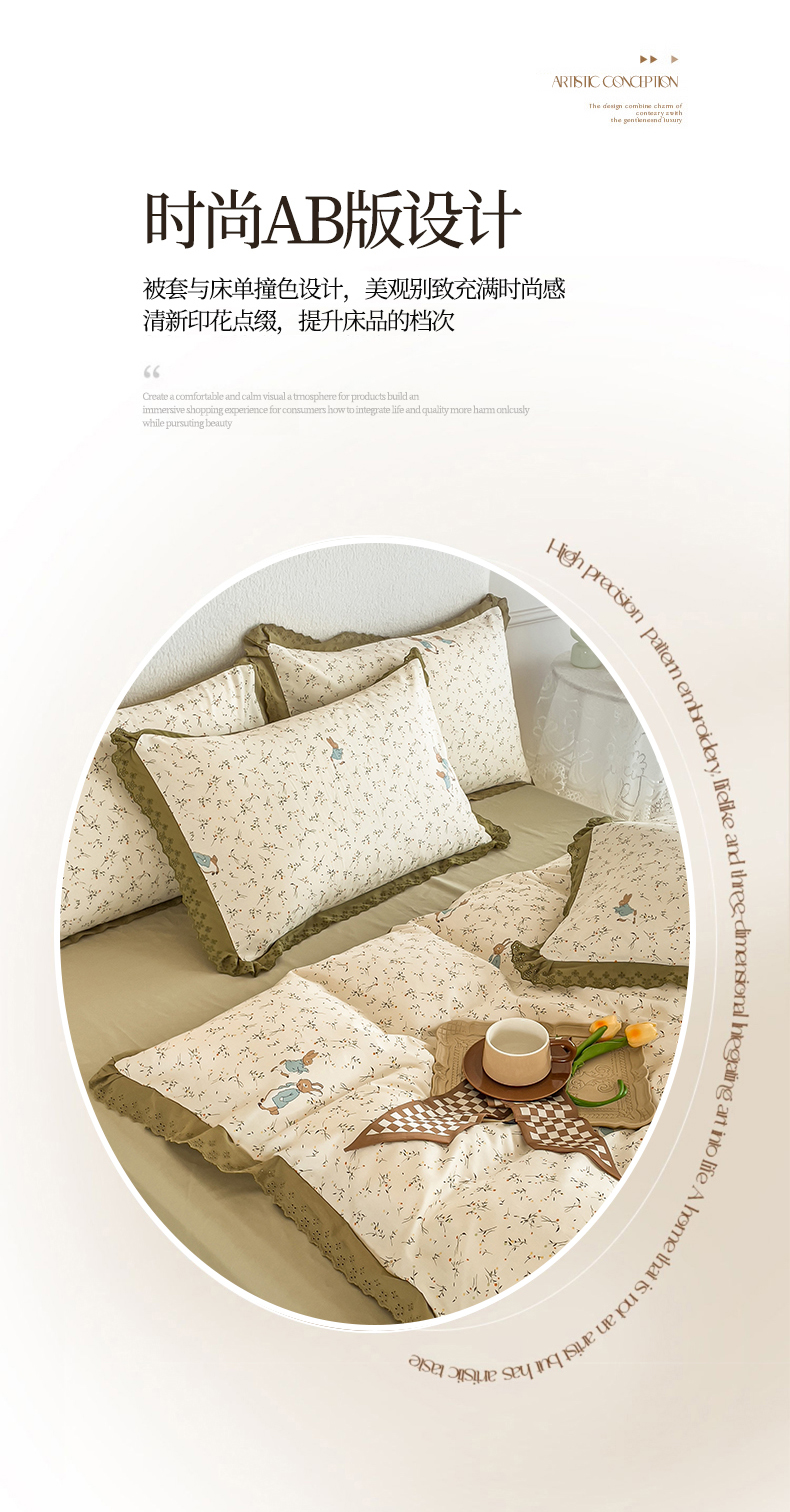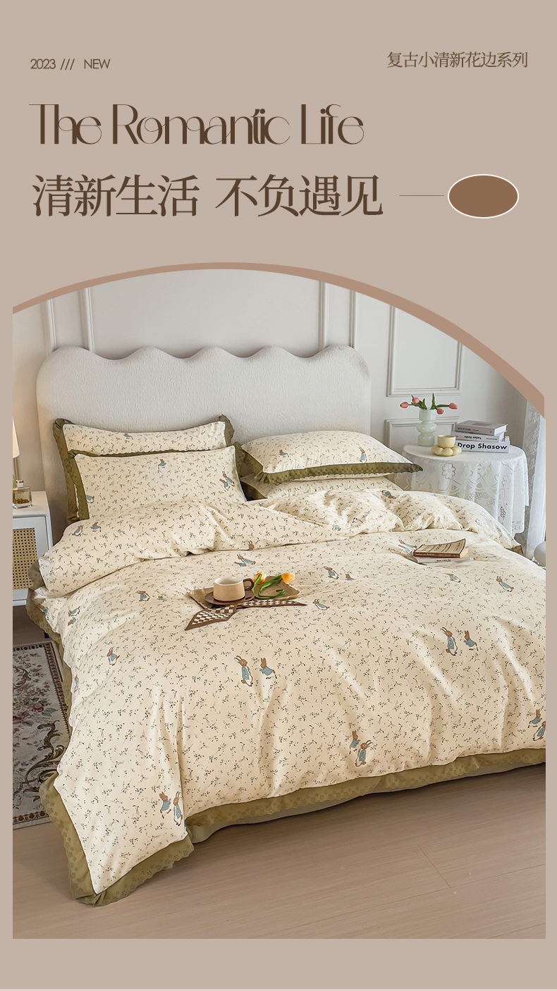 (总)KA家纺 2025新款13372复古全棉花边四件套