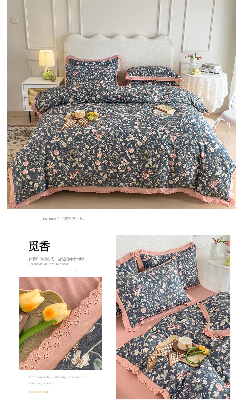(总)KA家纺 2025新款冬刺绣款宽边拼角牛奶绒四件套-沐言系列,沐言蓝,沐言白+卡其,沐言白+蓝,沐言粉