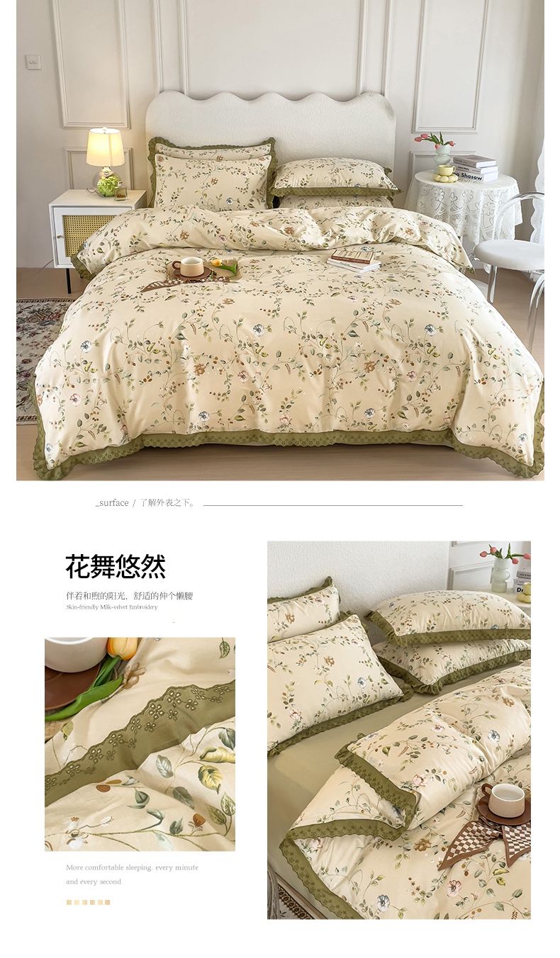 (总)KA家纺 2025冬季高克重绣花雕花牛奶绒四件套,相约奶昔白,相约粉,相约绿,相约蓝