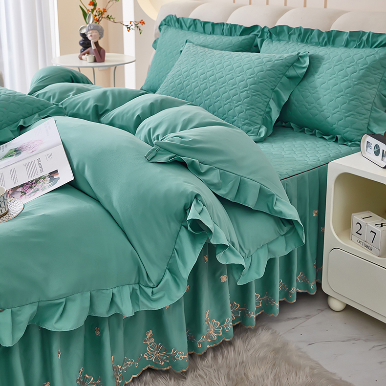 • 91家纺网 家纺一手货源 找家纺 家之硕家纺 2025新款云朵棉刺绣床裙四件套单床裙 豆沙