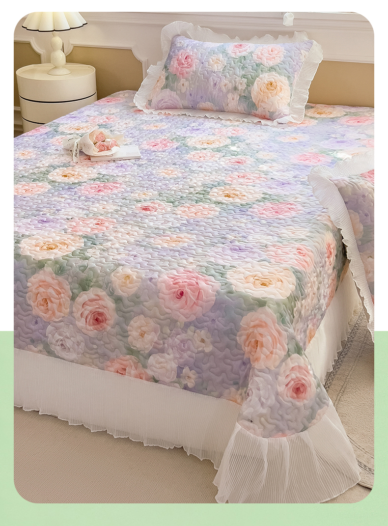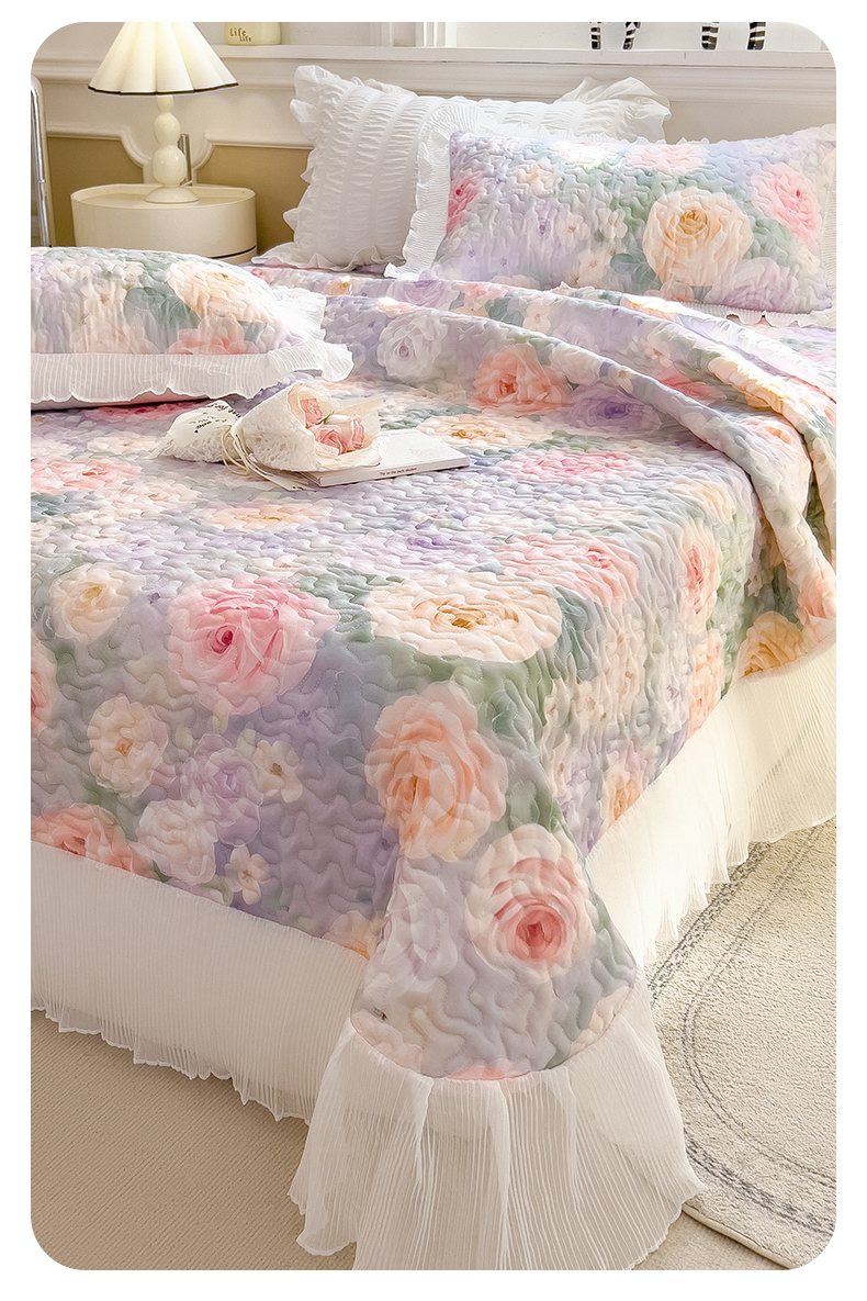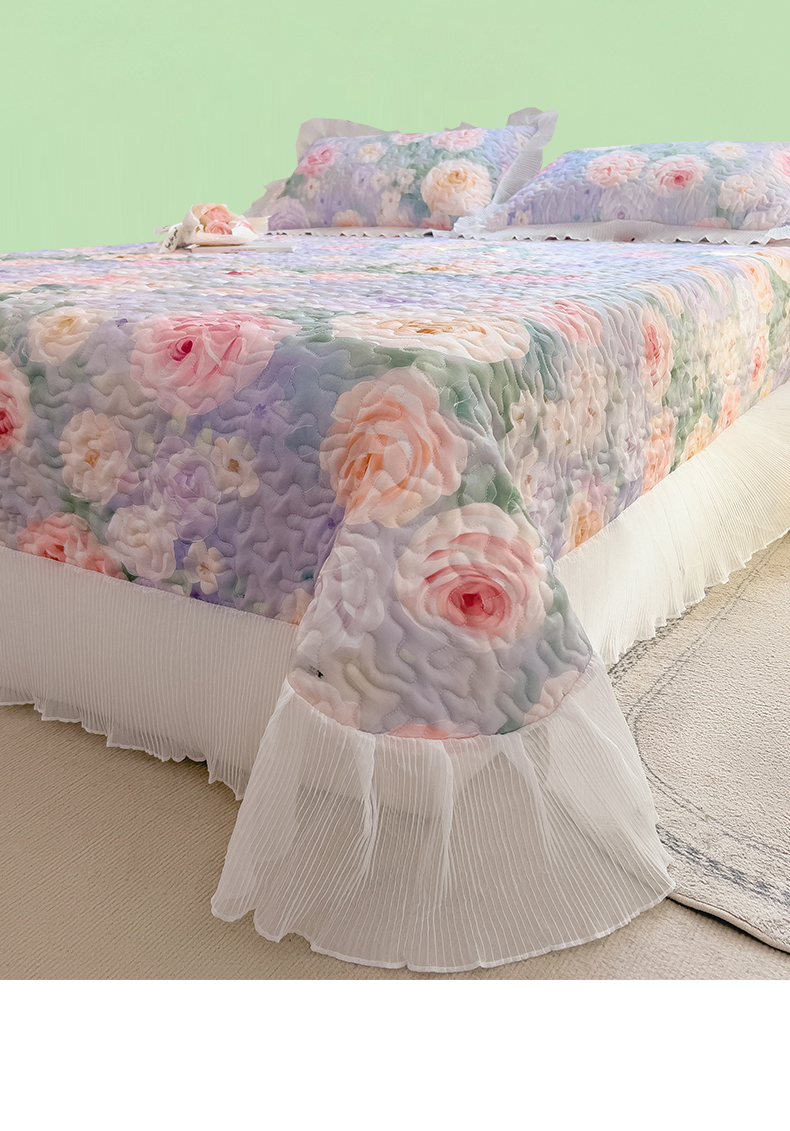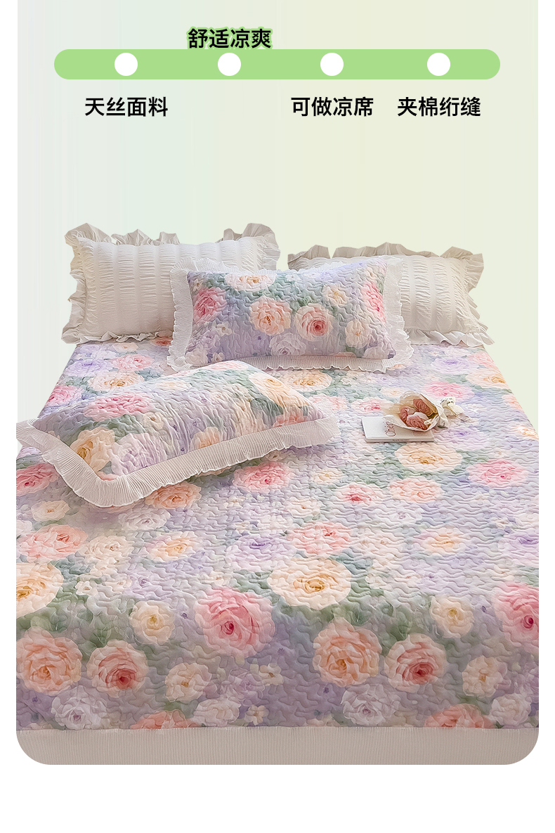 商品名称:迪梦思家纺 2025新款A类莱赛尔兰精天丝韩版印花床盖床裙床褥夏被 床盖-漪梦