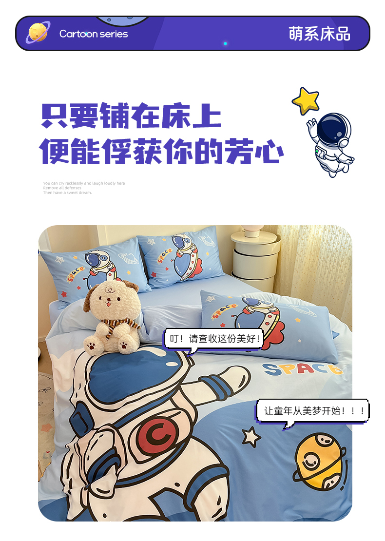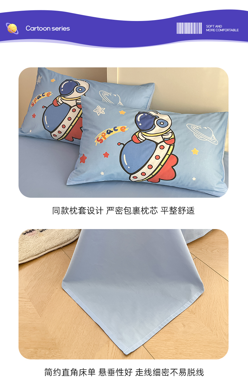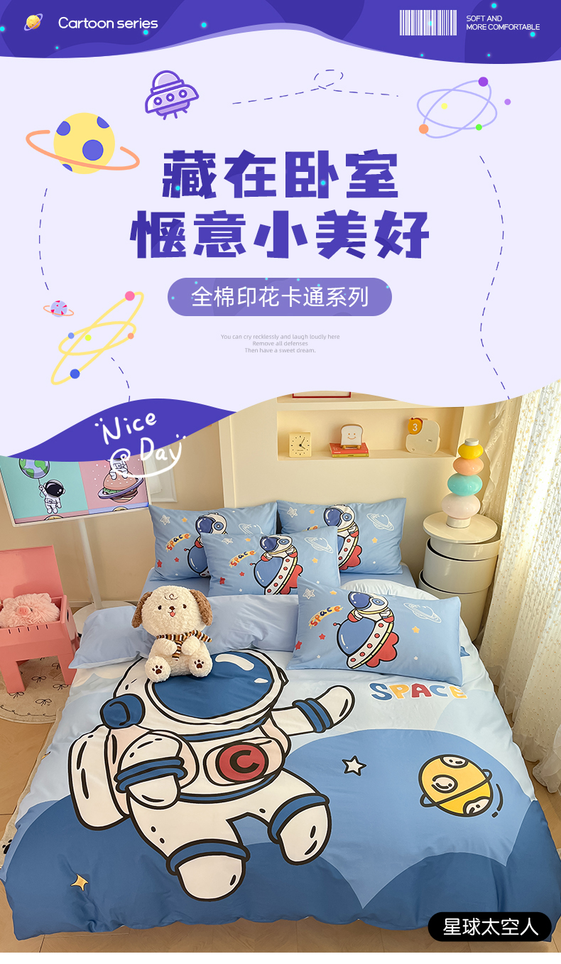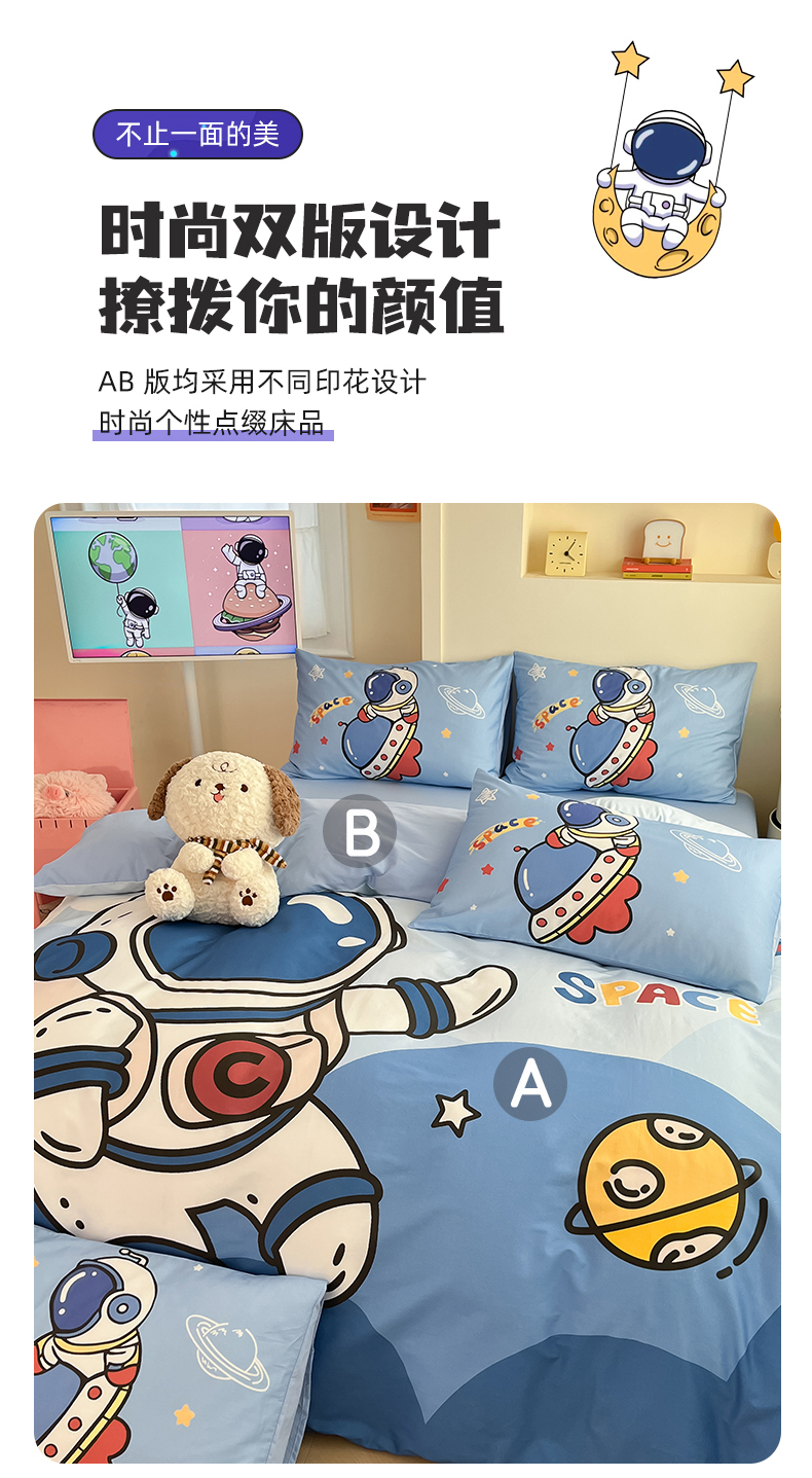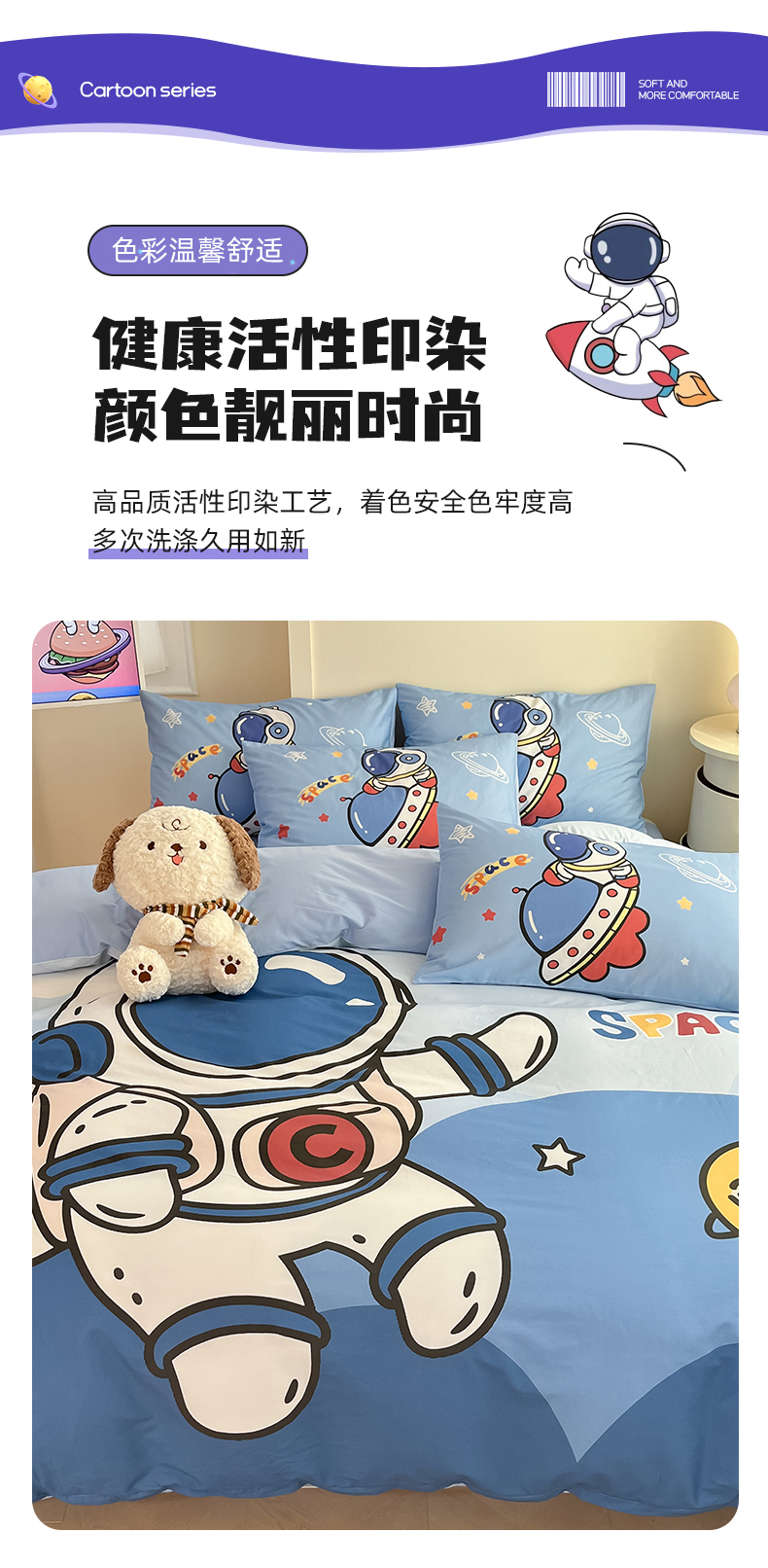 当前位置: 91家纺网 > 商品网购 > 床品套件 > 四件套 > 全棉普通四件套 > 金爱家 2025新款太空人纯棉四件套 星球太空人