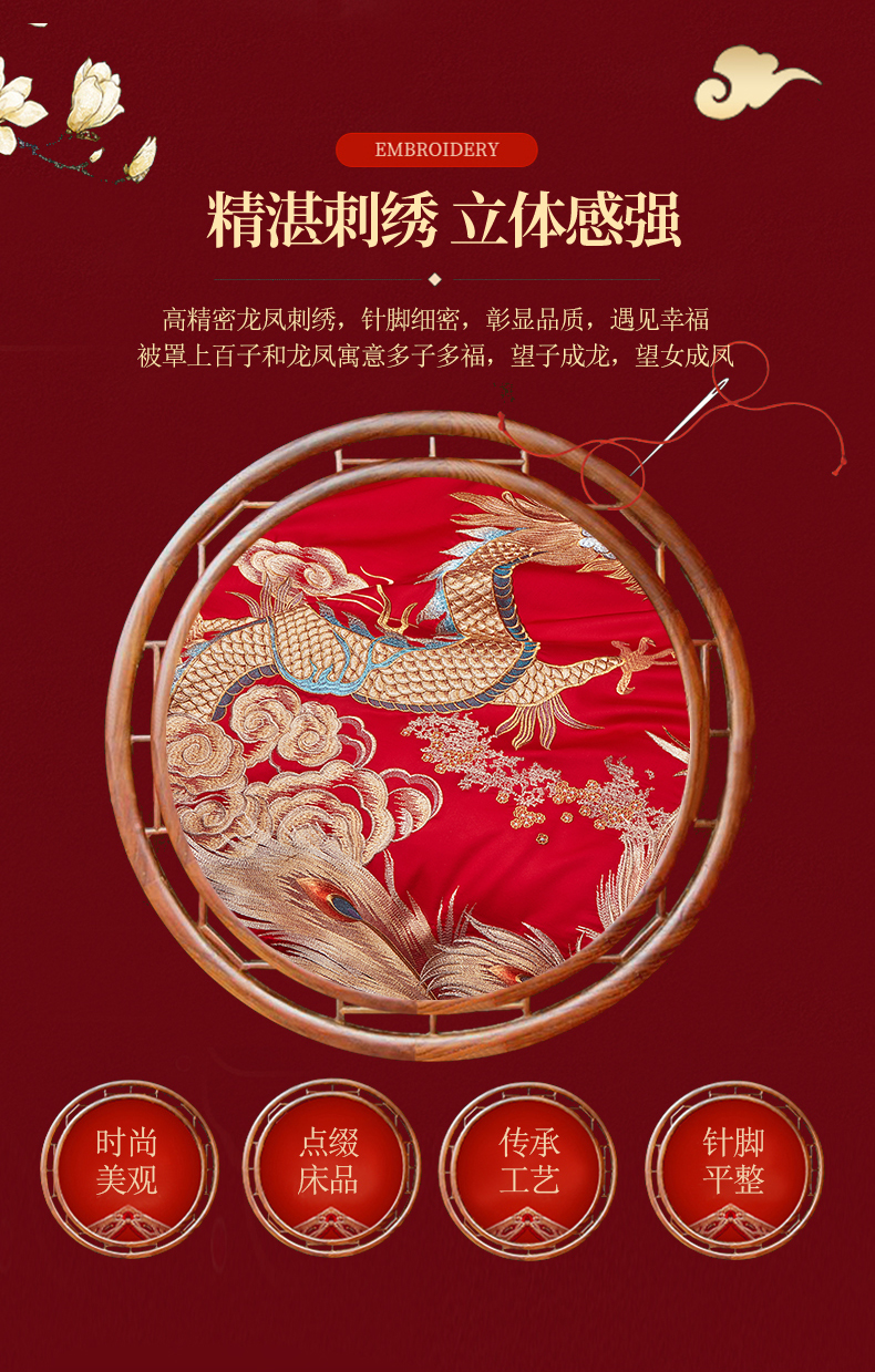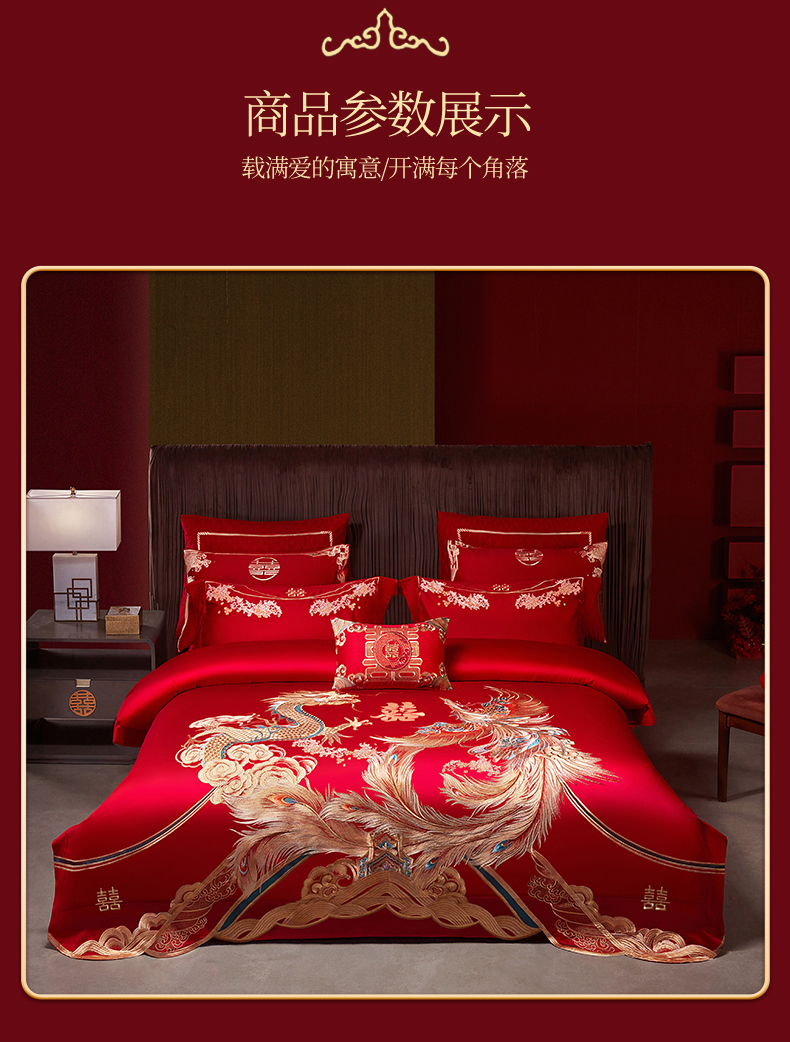 当前位置: 91家纺网 > 商品网购 > 床品套件 > 四件套 > 婚庆四件套 > 美娘阁 2025新款A版长绒棉贡段B版长绒棉贡段刺绣婚庆多件套 龙飞凤彩