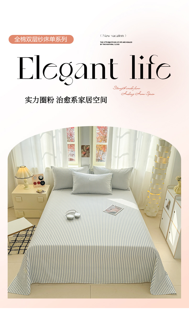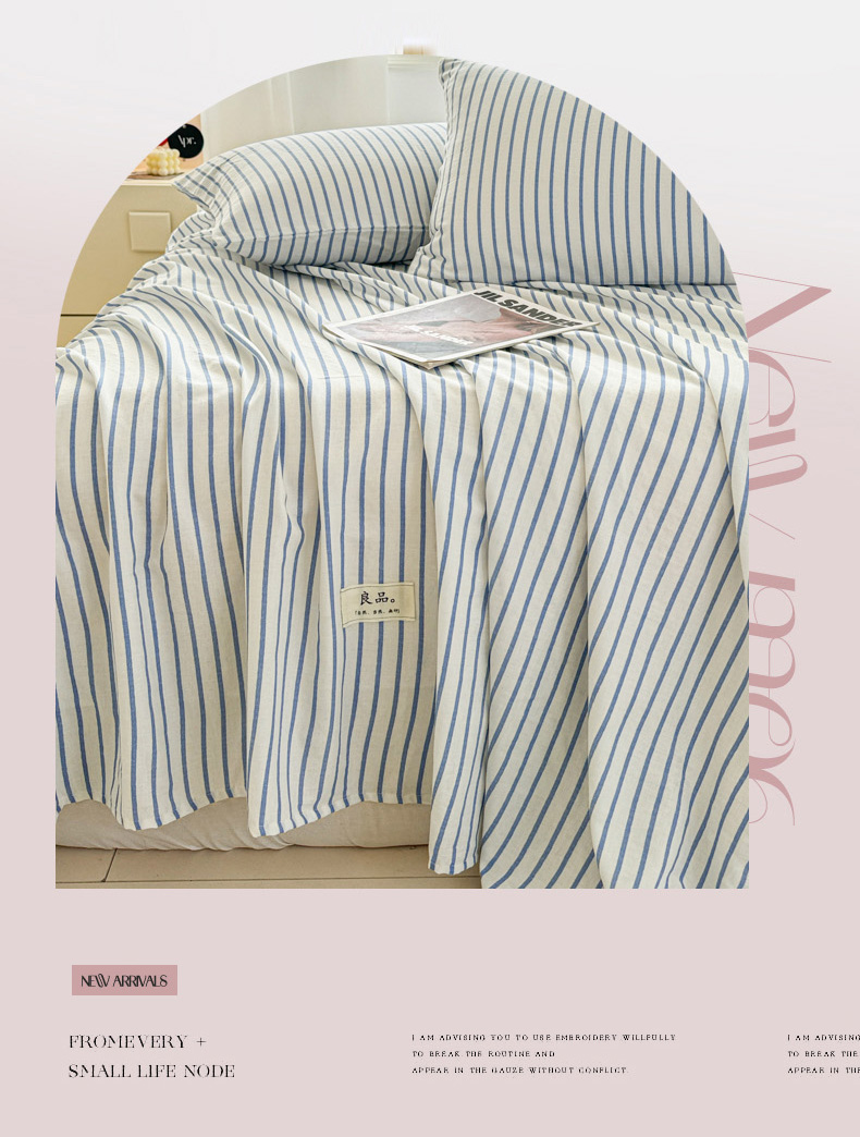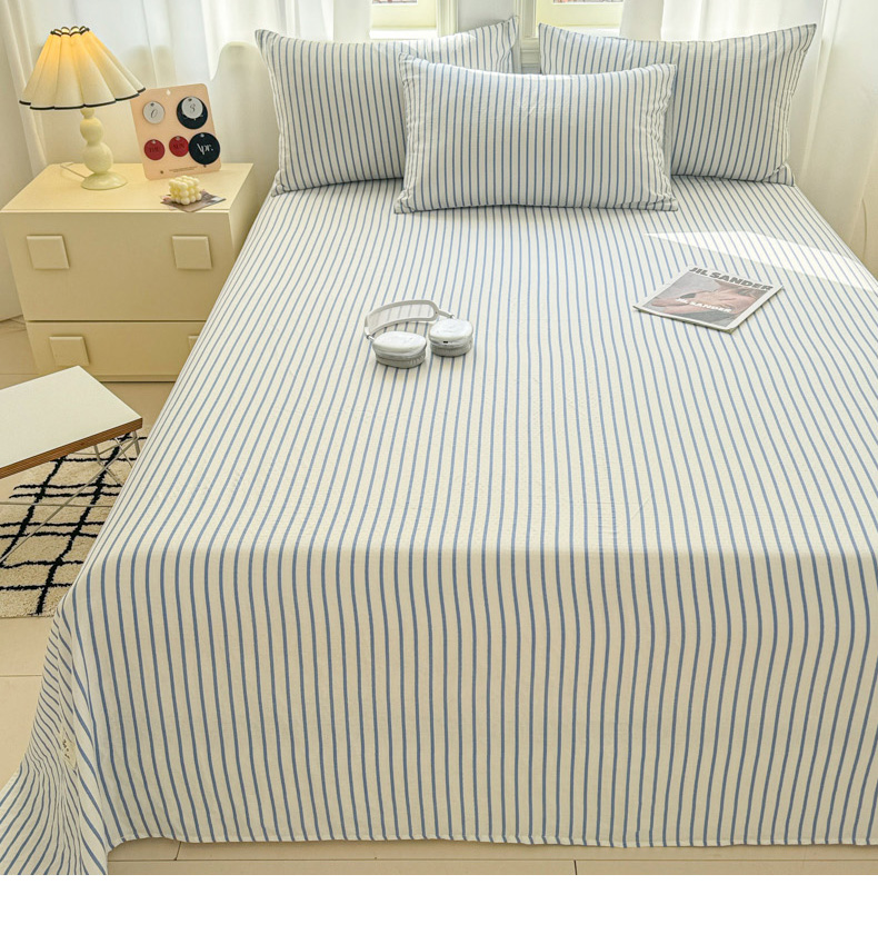 眠博士2025新款全棉双层纱床单 双层纱床单-白蓝条