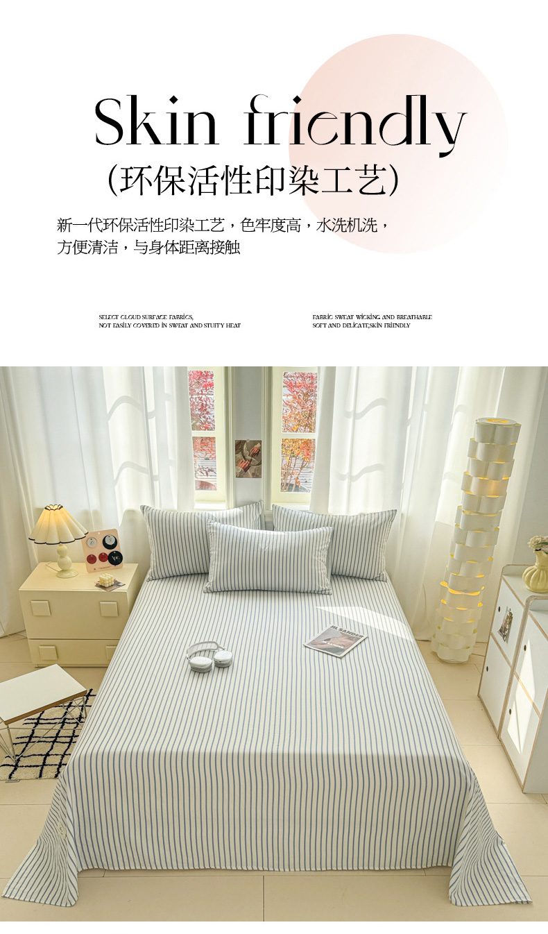 • 91家纺网 家纺一手货源 找家纺 眠博士2025新款全棉双层纱床单 双层纱床单-白蓝条