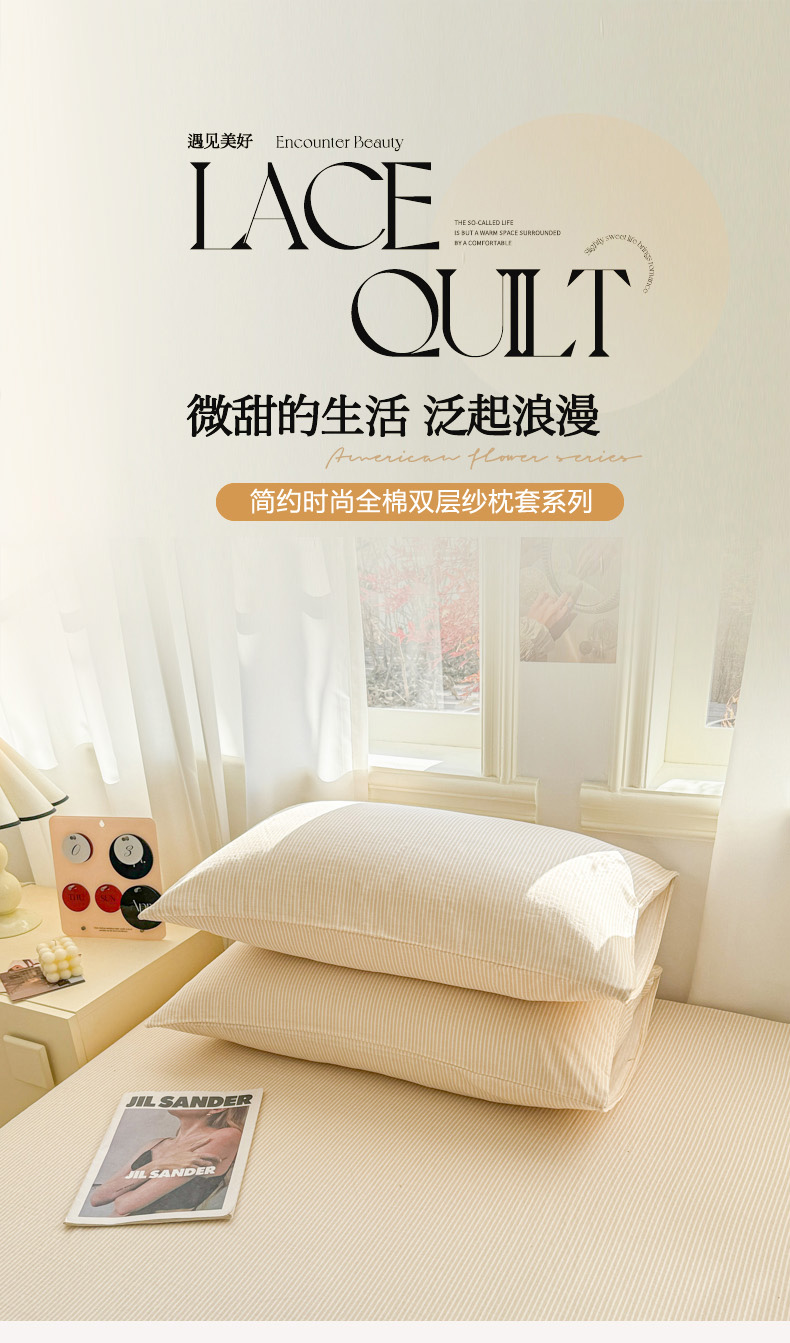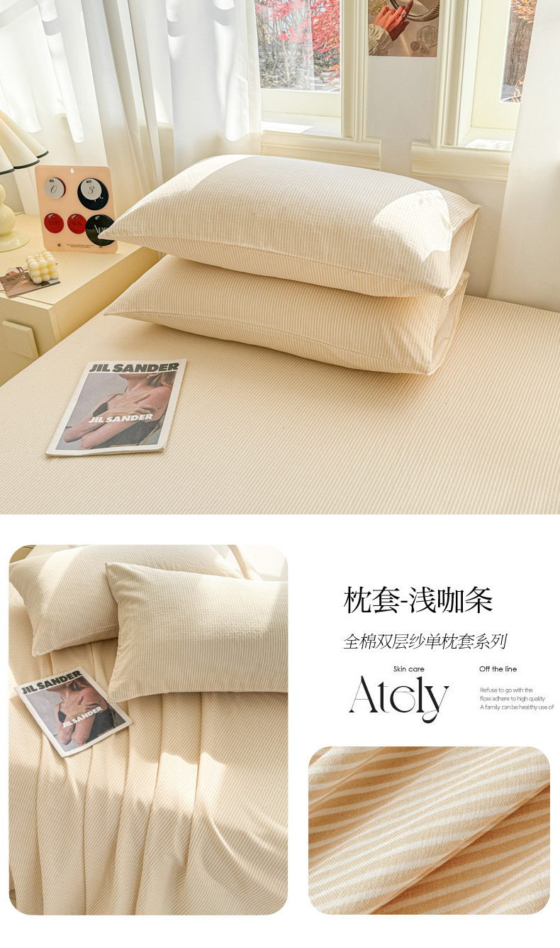 商品名称:眠博士2025新款全棉双层纱单枕套 双层纱枕套-浅咖条