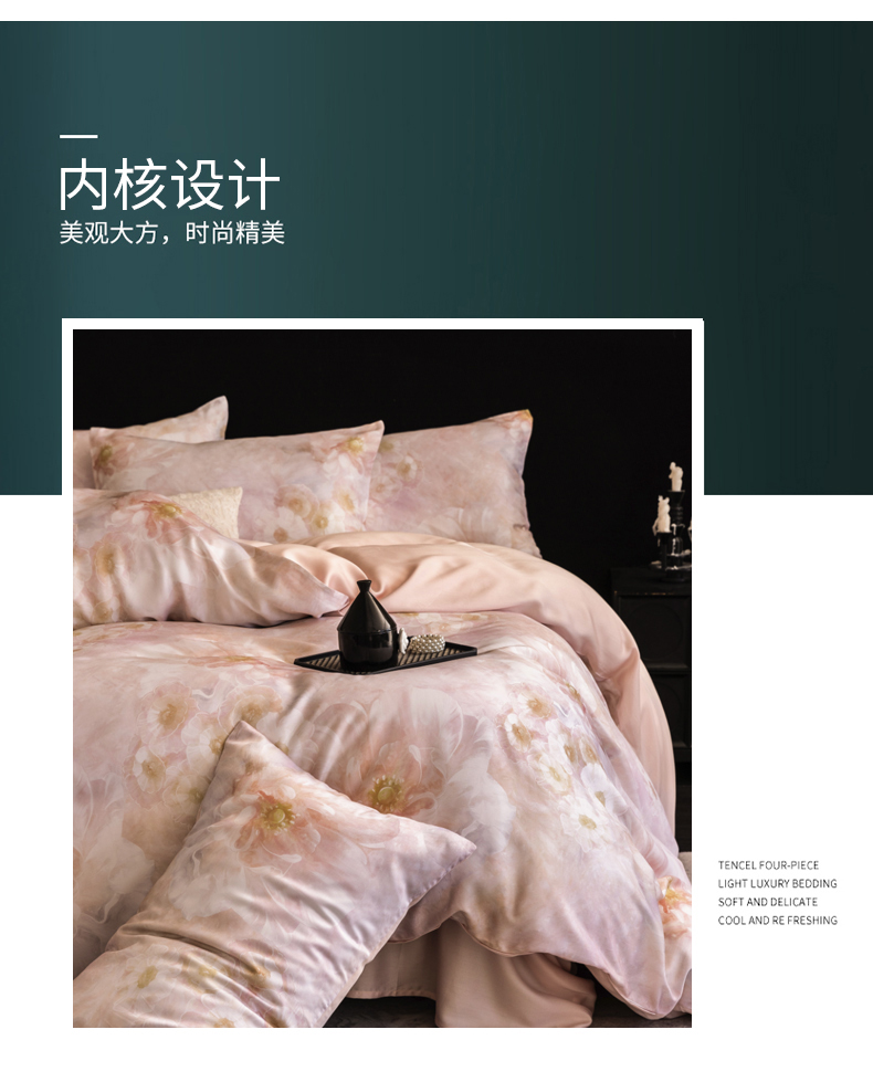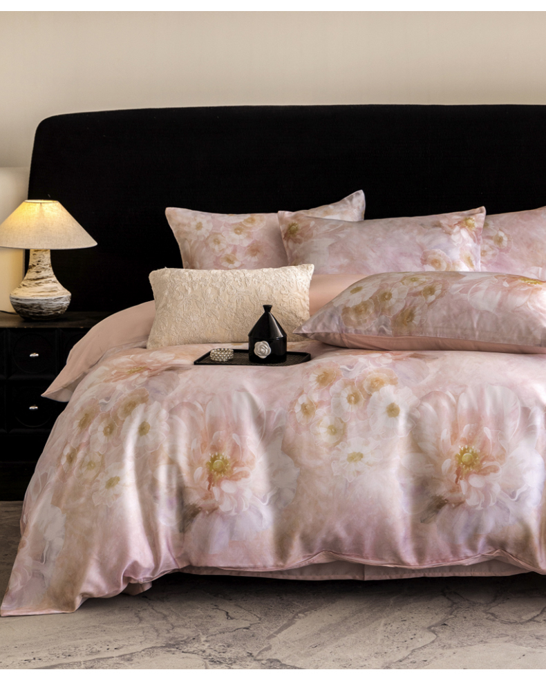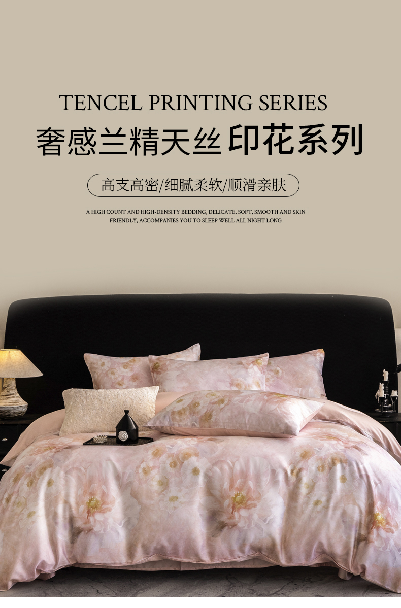 立奥被业 2025年新款100%兰精天丝四件套天丝数码印花四件套 天仙子-粉