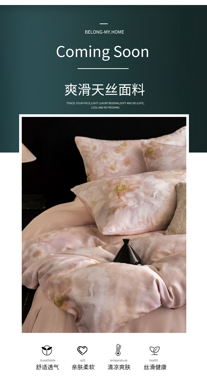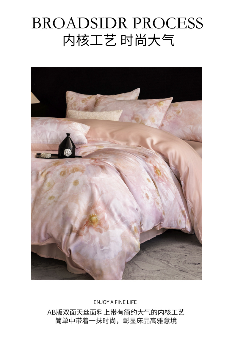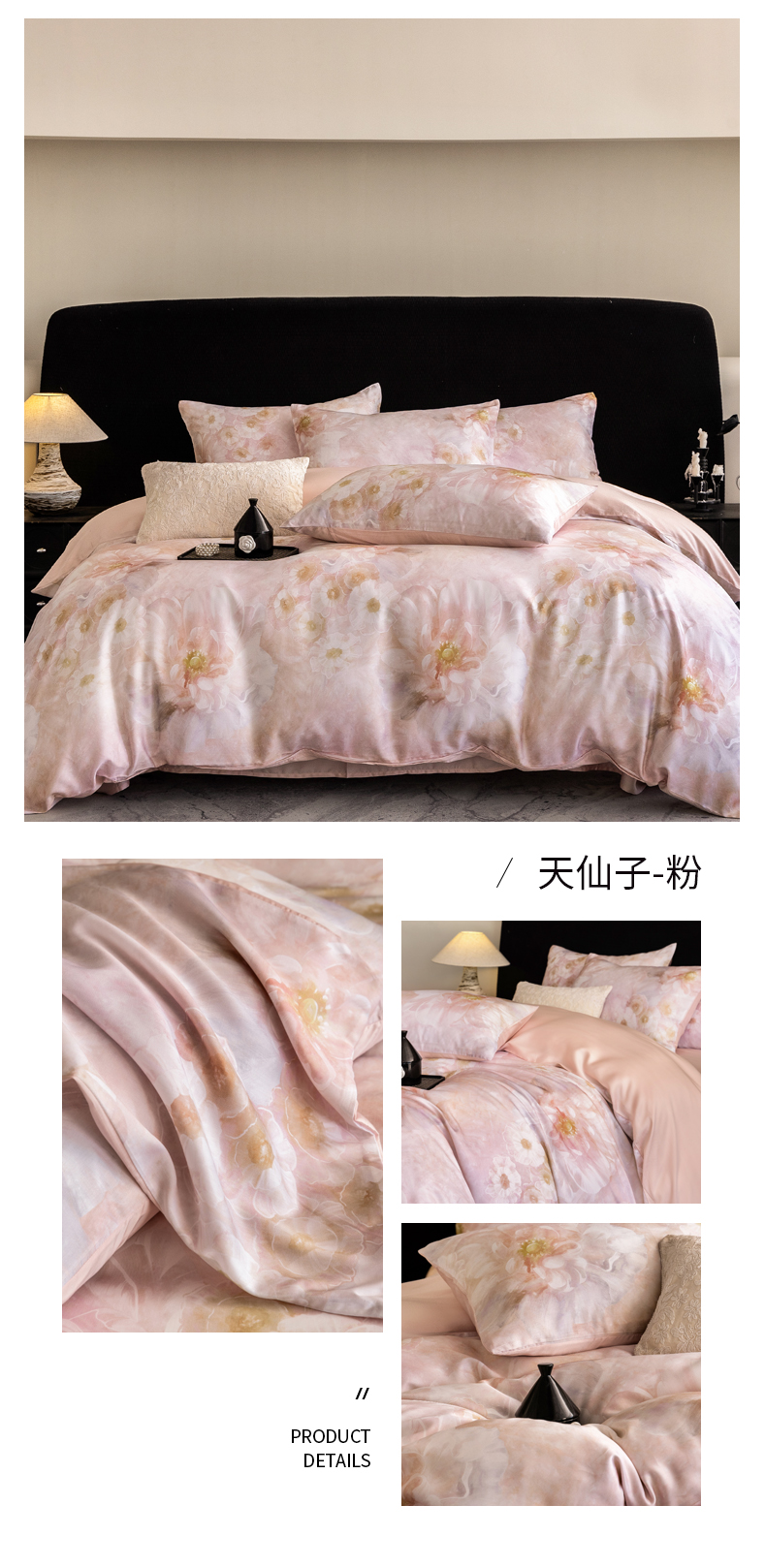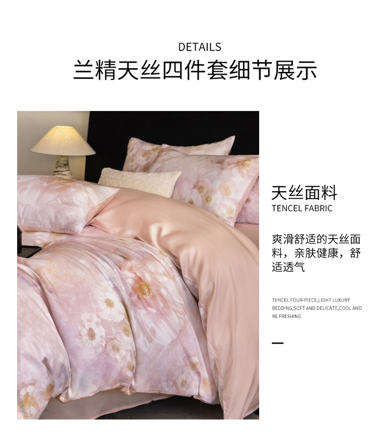 商品名称:立奥被业 2025年新款100%兰精天丝四件套天丝数码印花四件套 天仙子-粉
