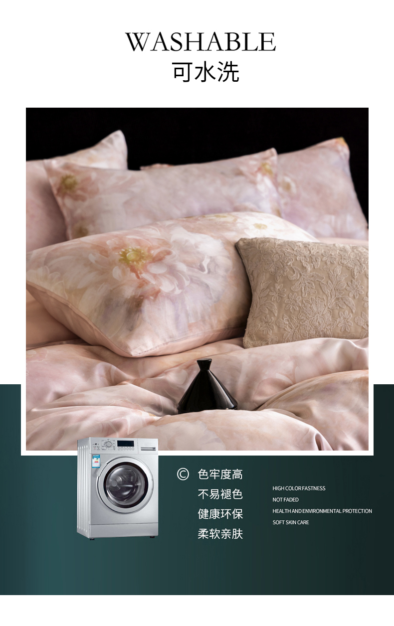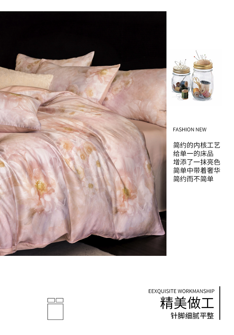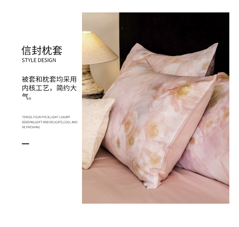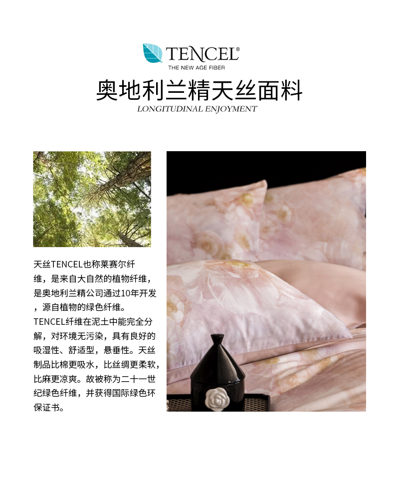 商品名称:立奥被业 2025年新款100%兰精天丝四件套天丝数码印花四件套 天仙子-粉