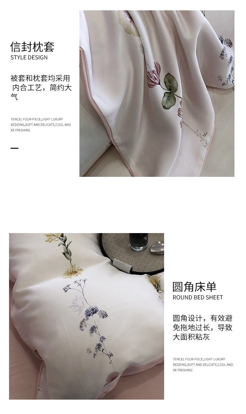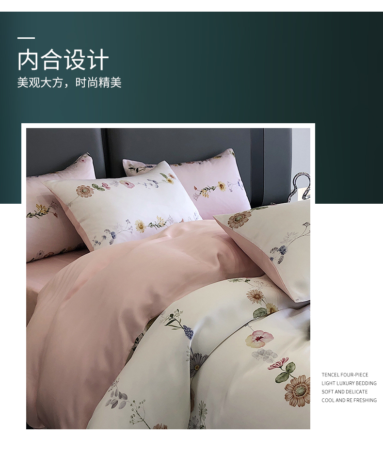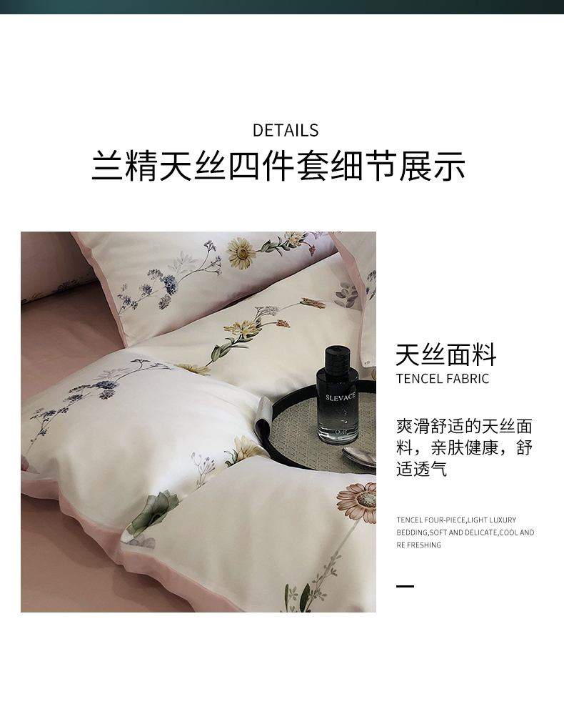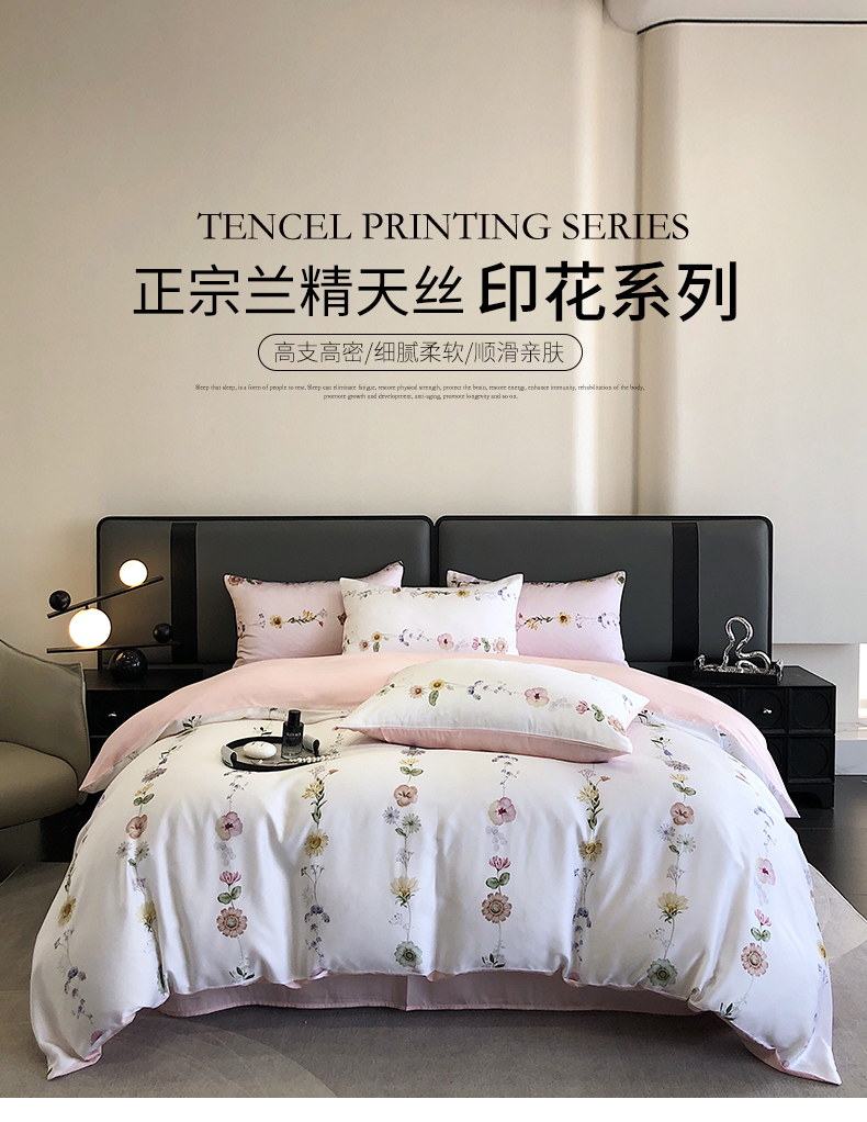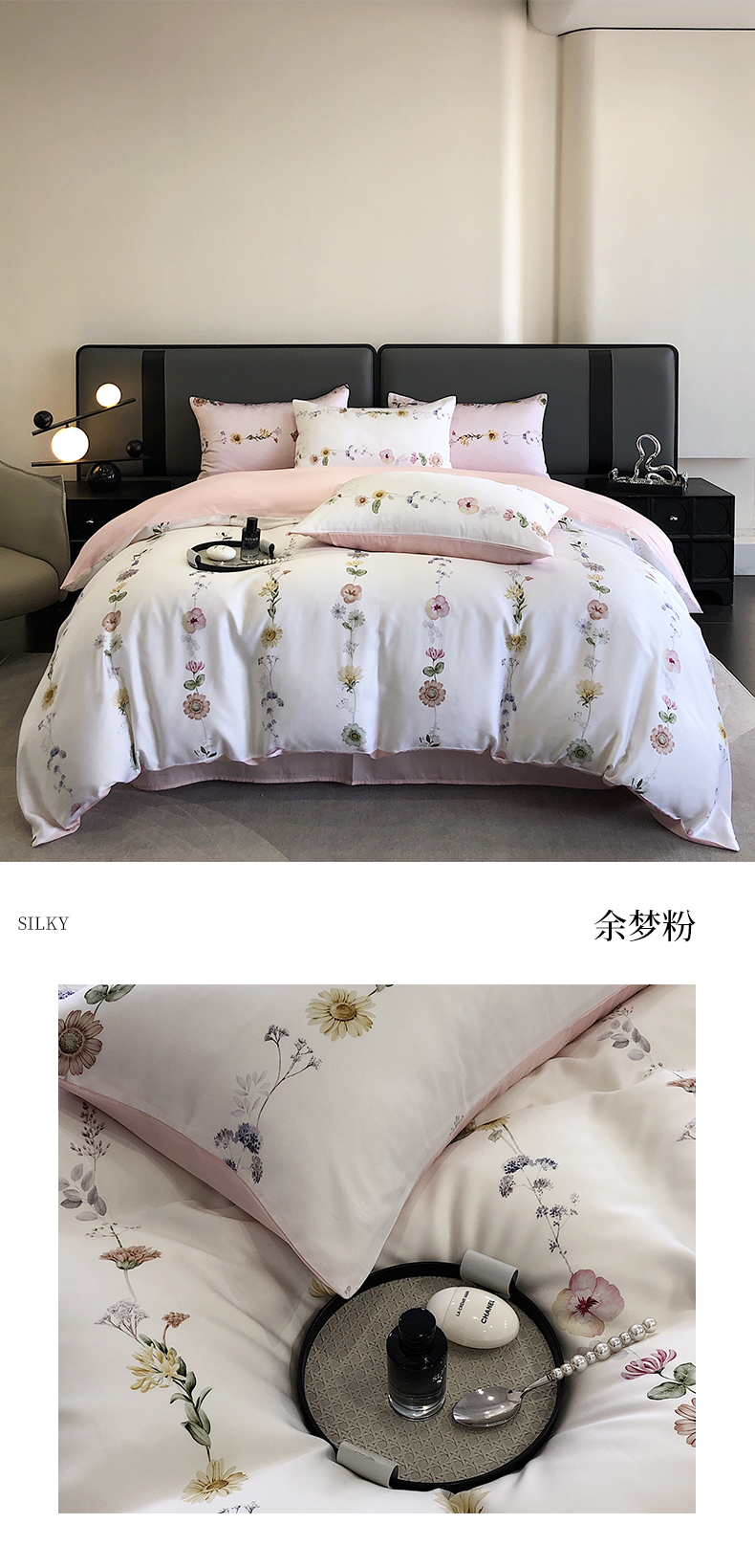 商品名称:立奥被业 2025年新款100%兰精天丝四件套天丝数码印花四件套 余梦粉