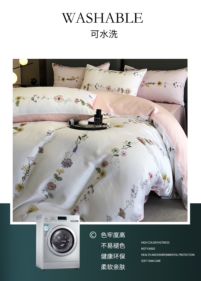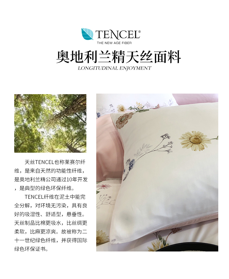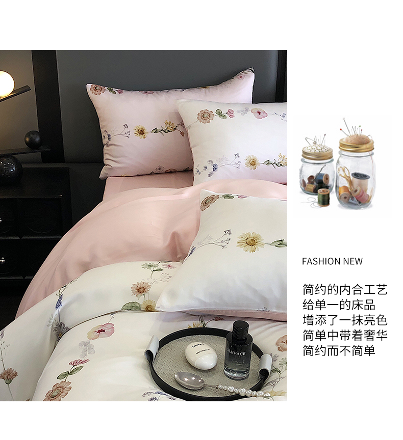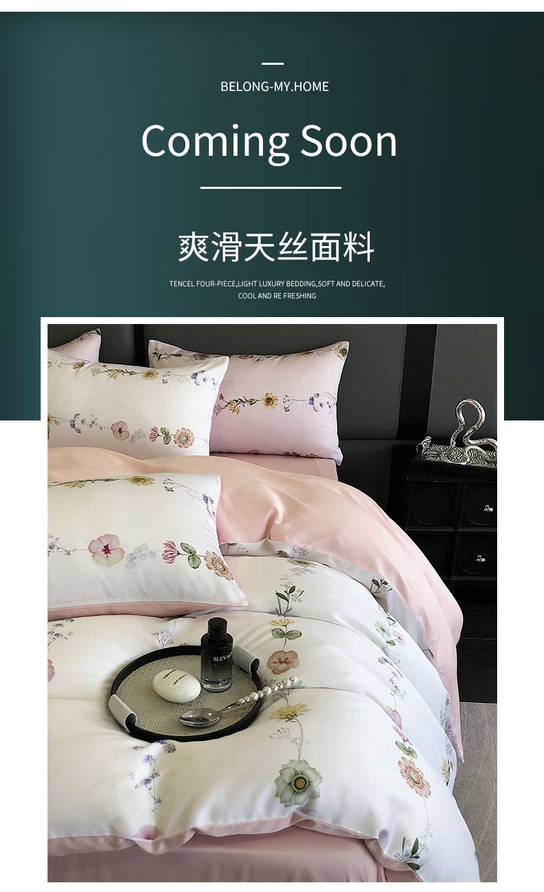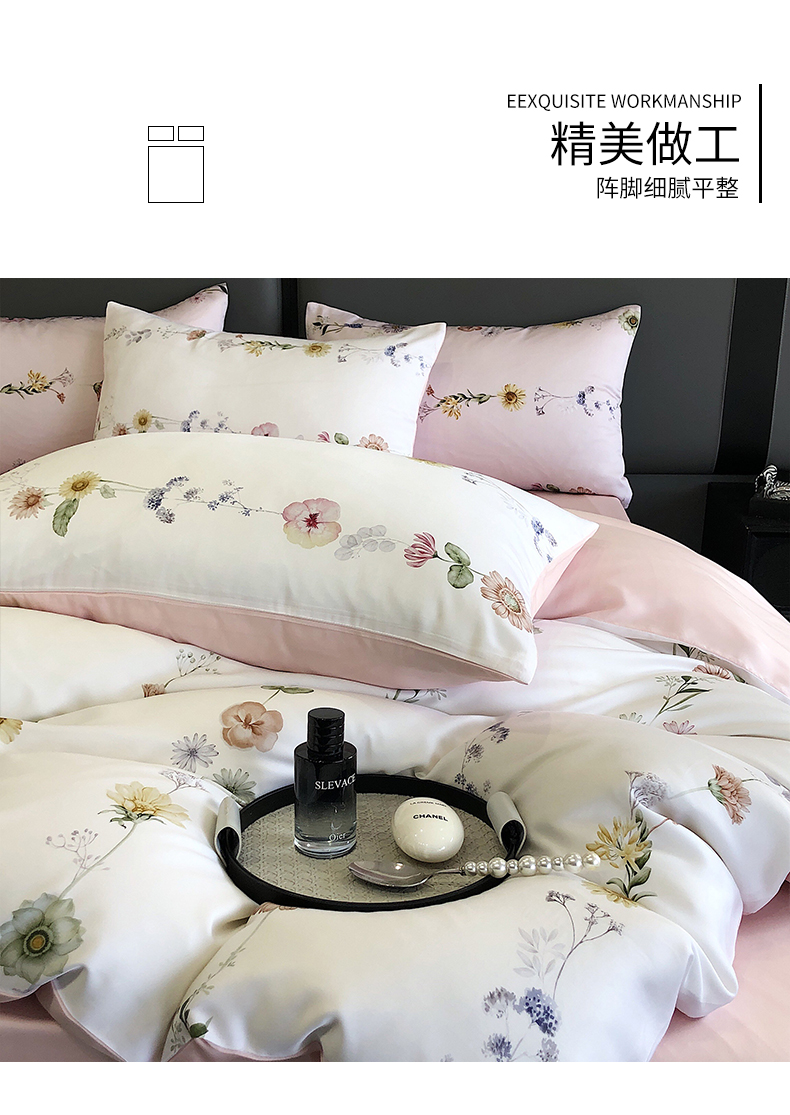 商品名称:立奥被业 2025年新款100%兰精天丝四件套天丝数码印花四件套 余梦粉