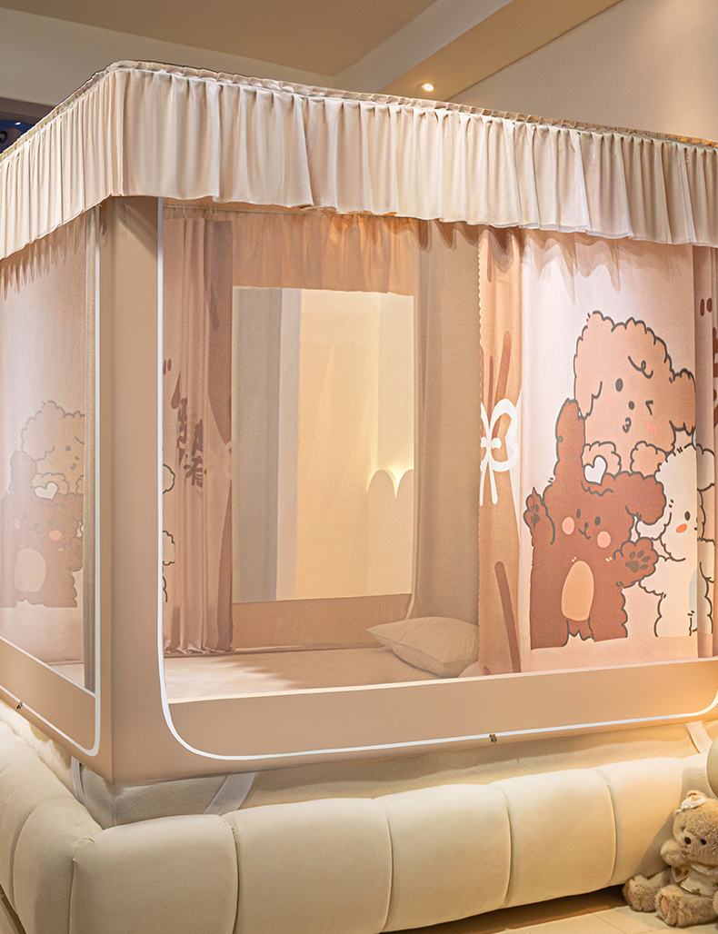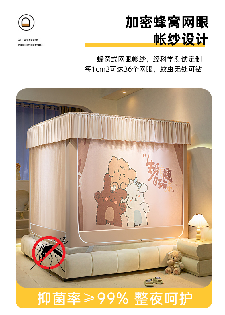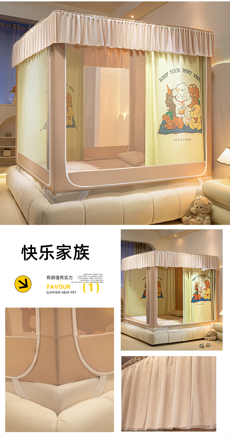 (总)飞轮海蚊帐 2025新款三开门方顶花边防摔遮光蚊帐-Z39,你好蛙,不许动,快乐家族,生活有趣,熊猫宝