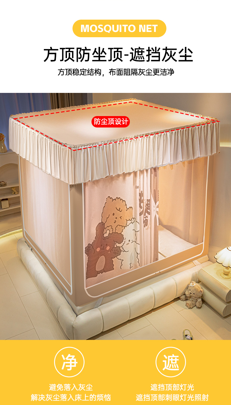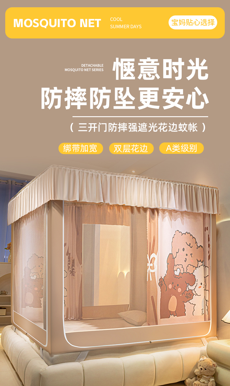 商品名称:飞轮海蚊帐 2025新款三开门方顶花边防摔遮光蚊帐-Z39 生活有趣