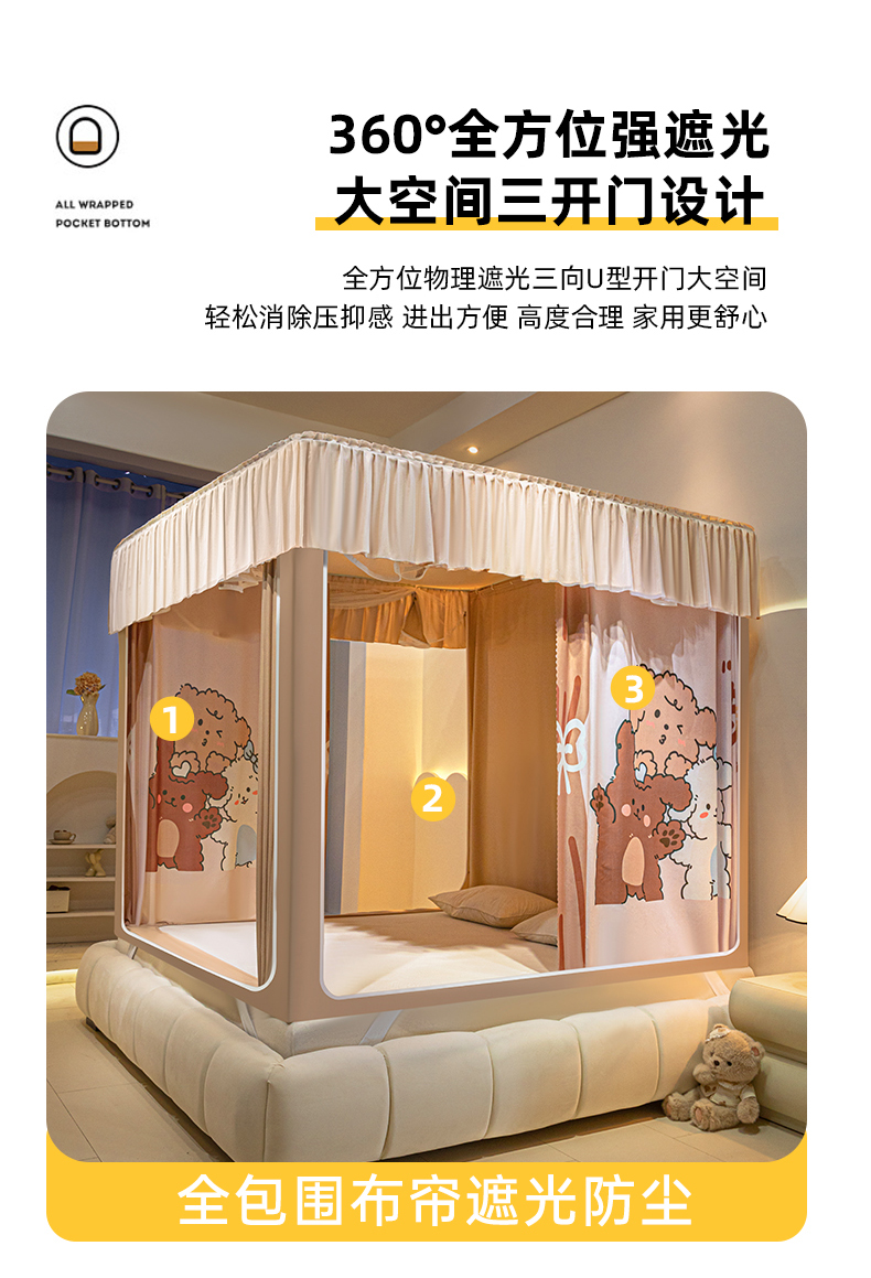 (总)飞轮海 2025新款全包遮光防蚊蚊帐Z31,黛蓝,奶油黄,香槟