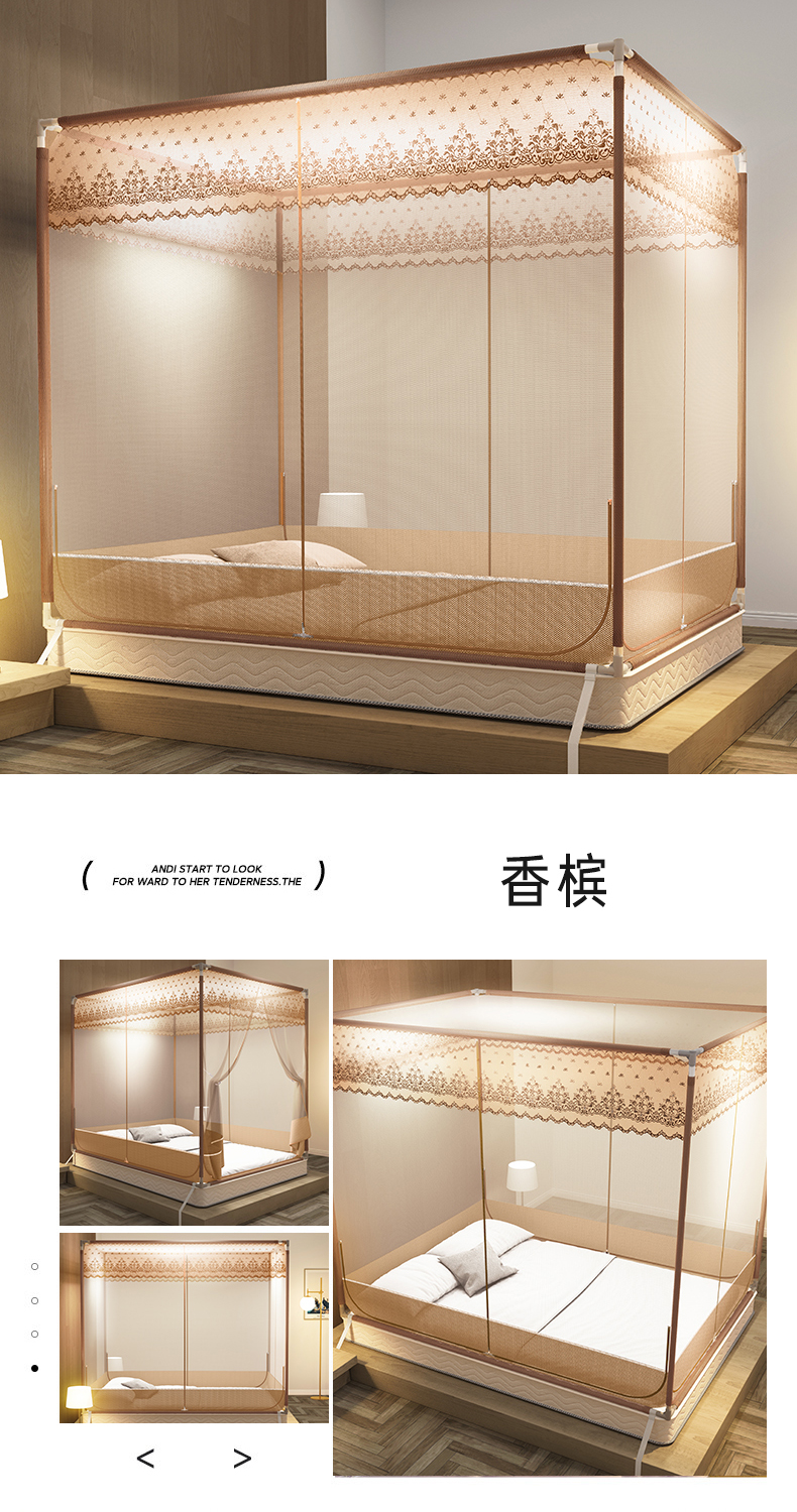 (总)飞轮海蚊帐 2023新款三开门落地遮光蚊帐-L-93,高级灰,芥末绿,奶油黄,香槟
