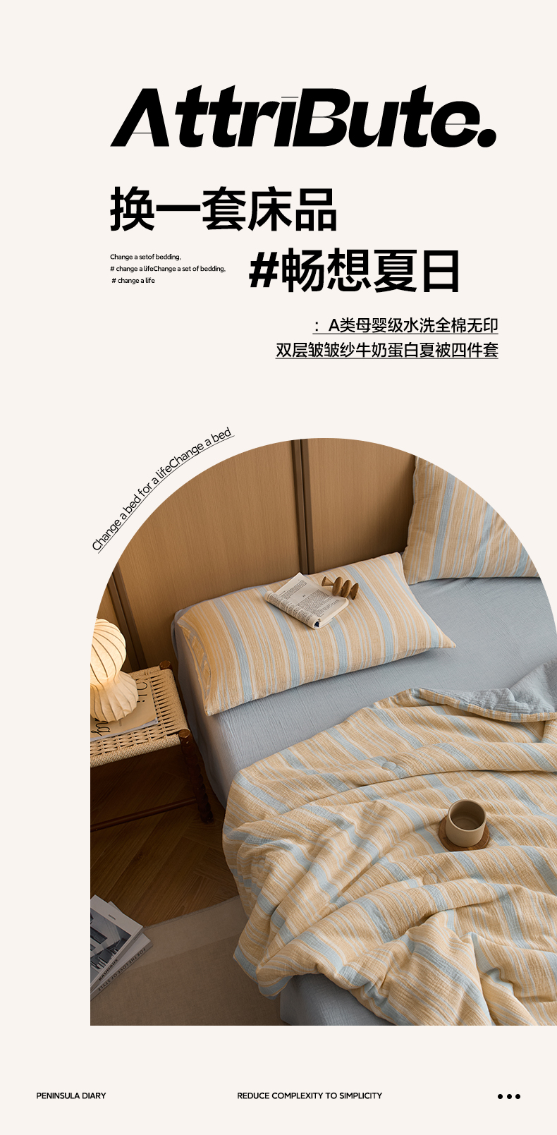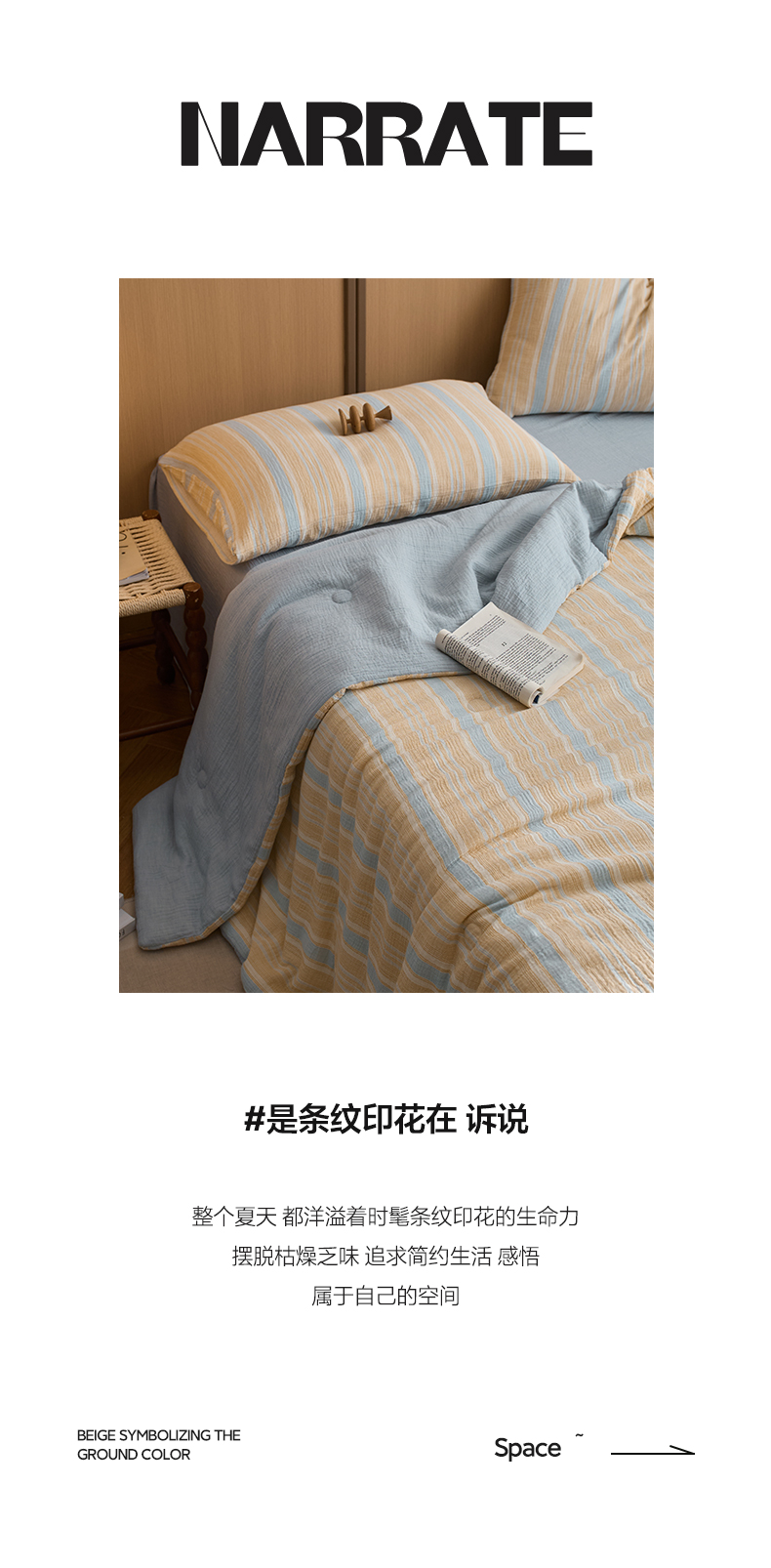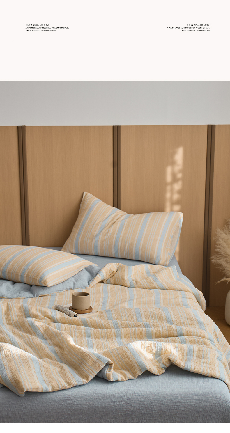 • 91家纺网 家纺一手货源 找家纺 一加一 2025新款A类母婴级水洗全棉无印双层皱皱纱牛奶蛋白夏被四件套 时予桔蓝
