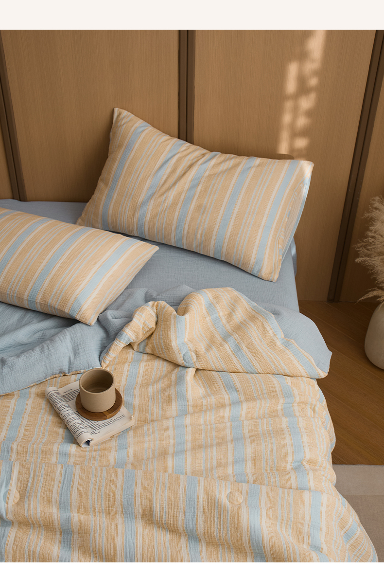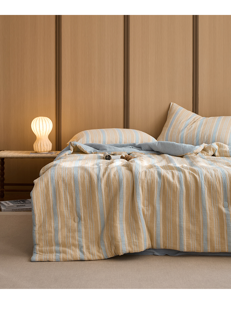 当前位置: 91家纺网 > 商品网购 > 被子 > 夏被 > 一加一 2025新款A类母婴级水洗全棉无印双层皱皱纱牛奶蛋白夏被四件套 时予桔蓝