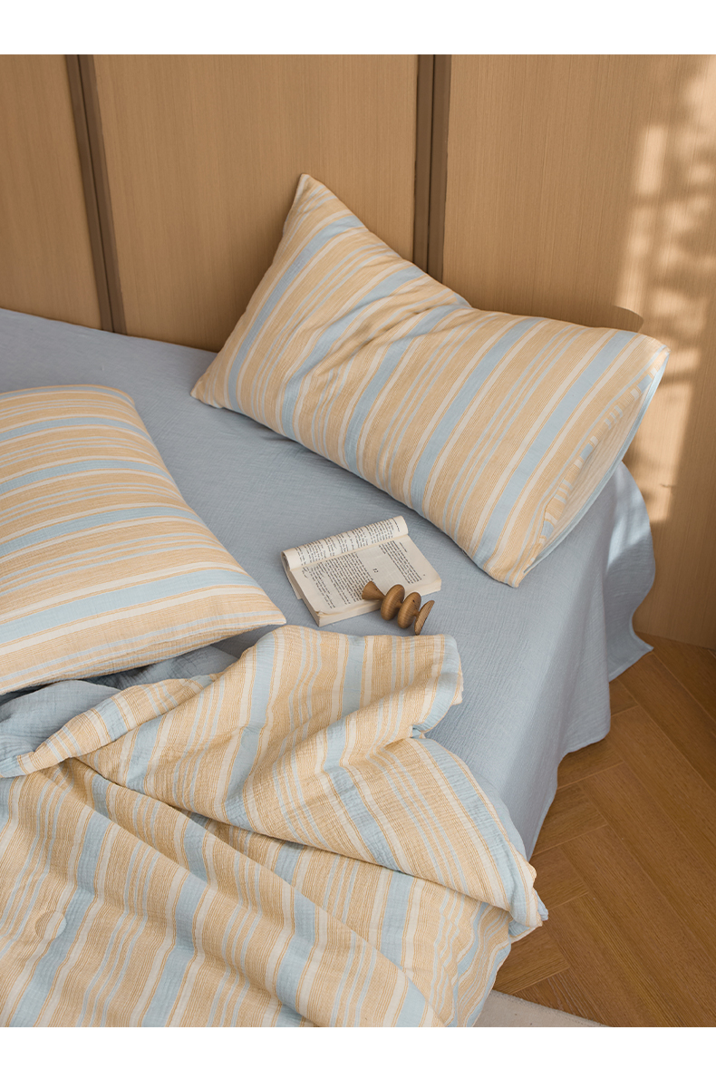 一加一 2025新款A类母婴级水洗全棉无印双层皱皱纱牛奶蛋白夏被四件套 时予桔蓝