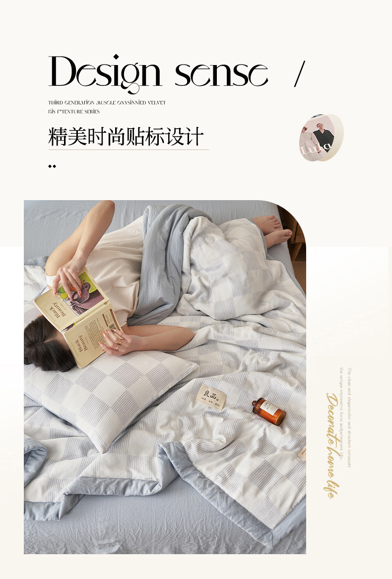(总)一加一 2025新款全棉色织简约风艾阳绒抗菌被芯,浅兰韵律,桃之夭天,悠然时光