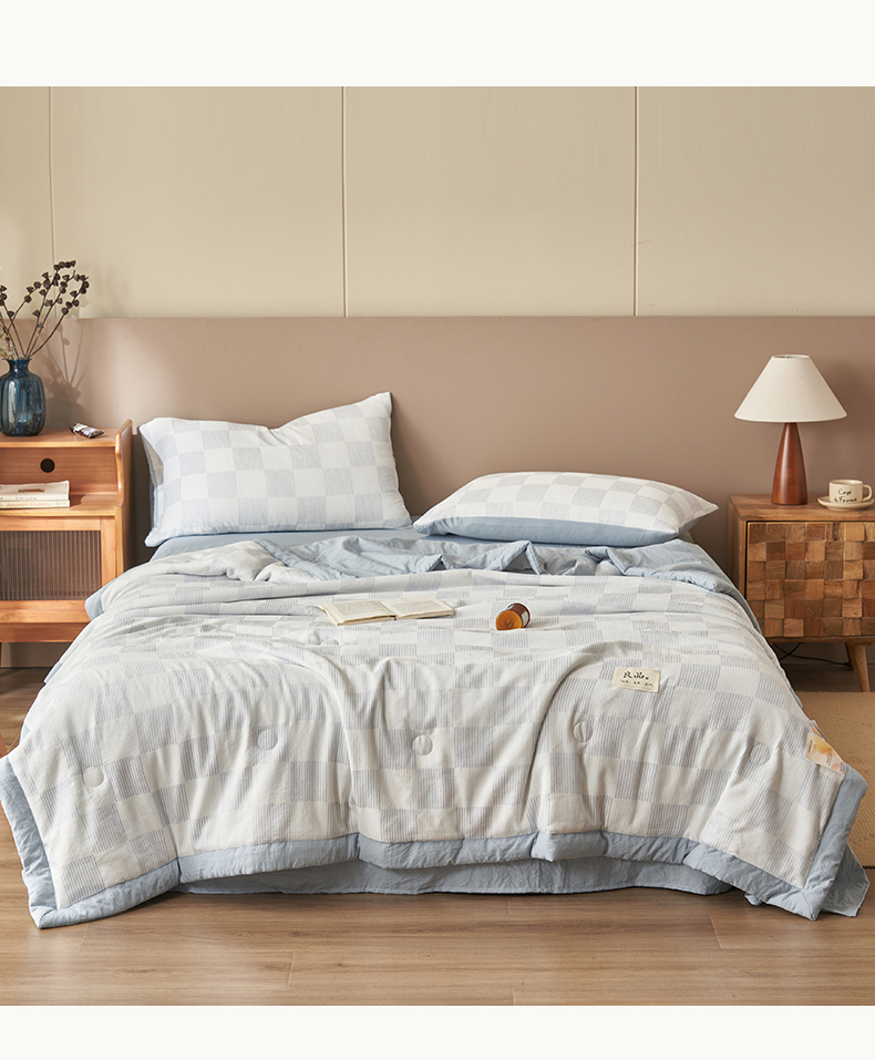 (总)一加一 2025新款A类全棉原棉提花大豆被被子被芯,琉璃-米白,棋盘格-米白
