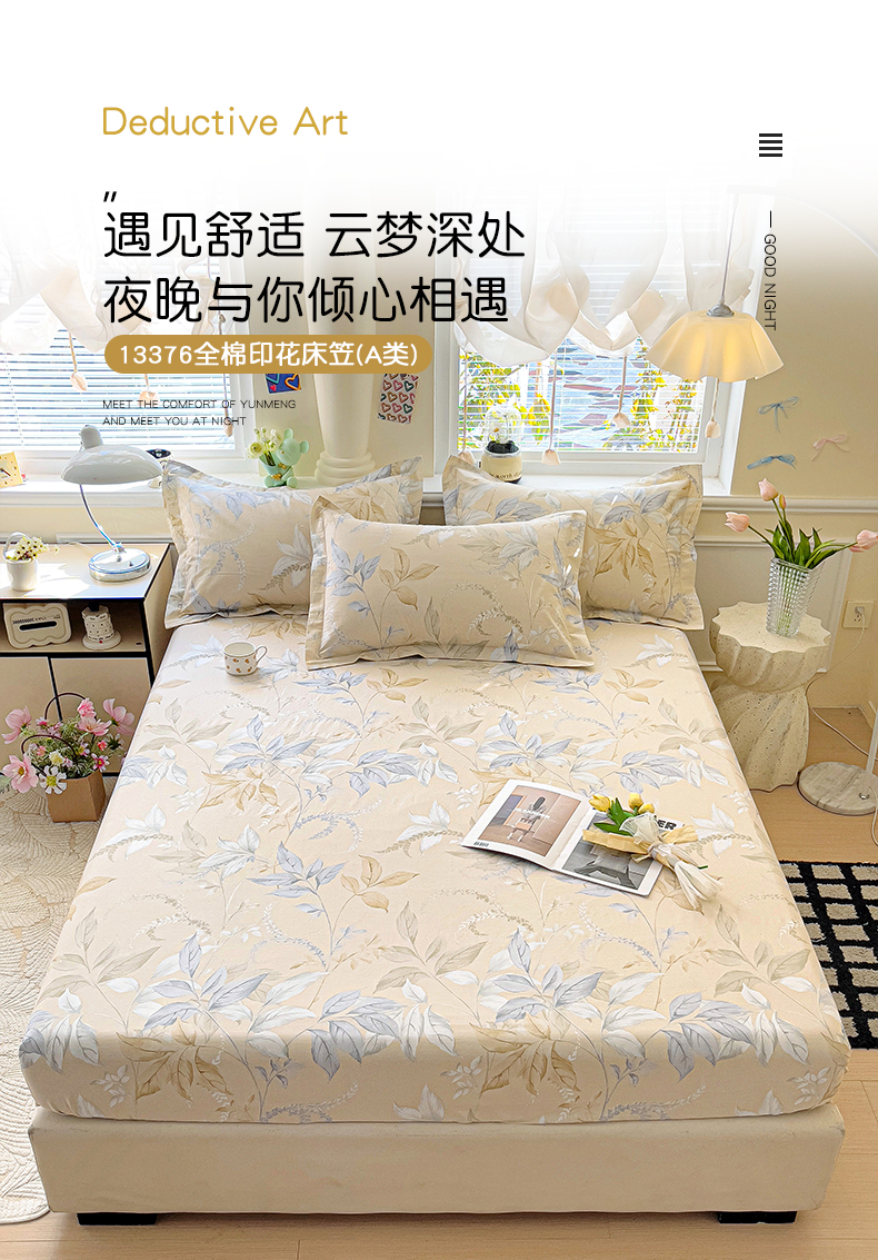 • 91家纺网 家纺一手货源 找家纺 大柏树 2025新款全棉13376印花四件套系列(可定制)-单床笠如月梦