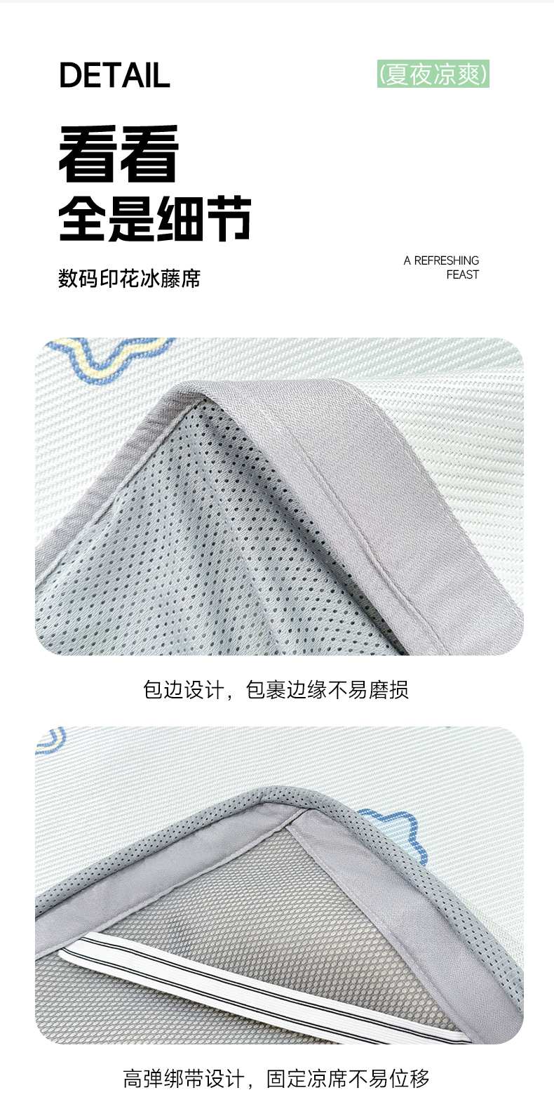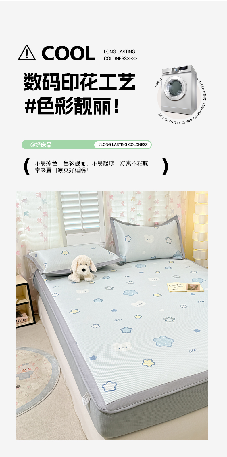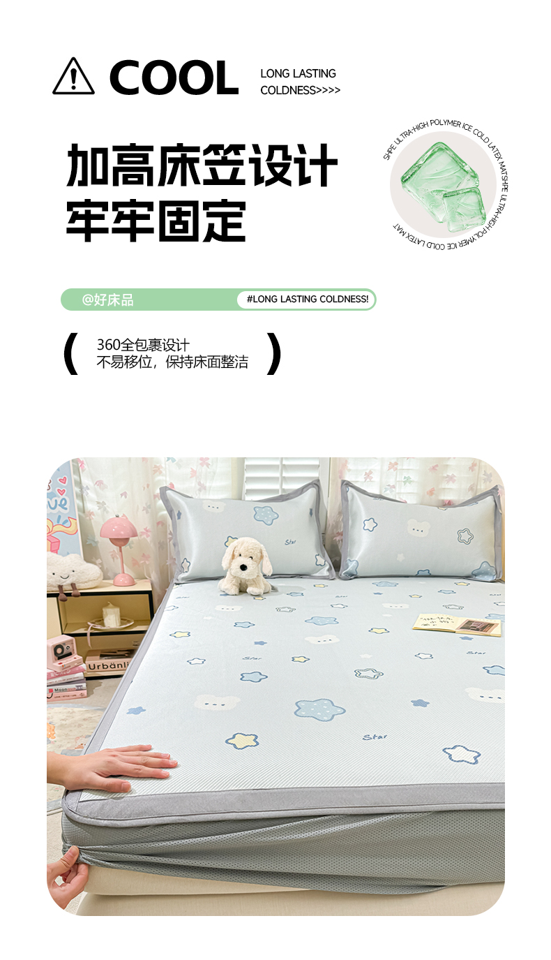 • 91家纺网 家纺一手货源 找家纺 2025新款小清新数码印花床笠款冰藤席 床笠星塔小熊